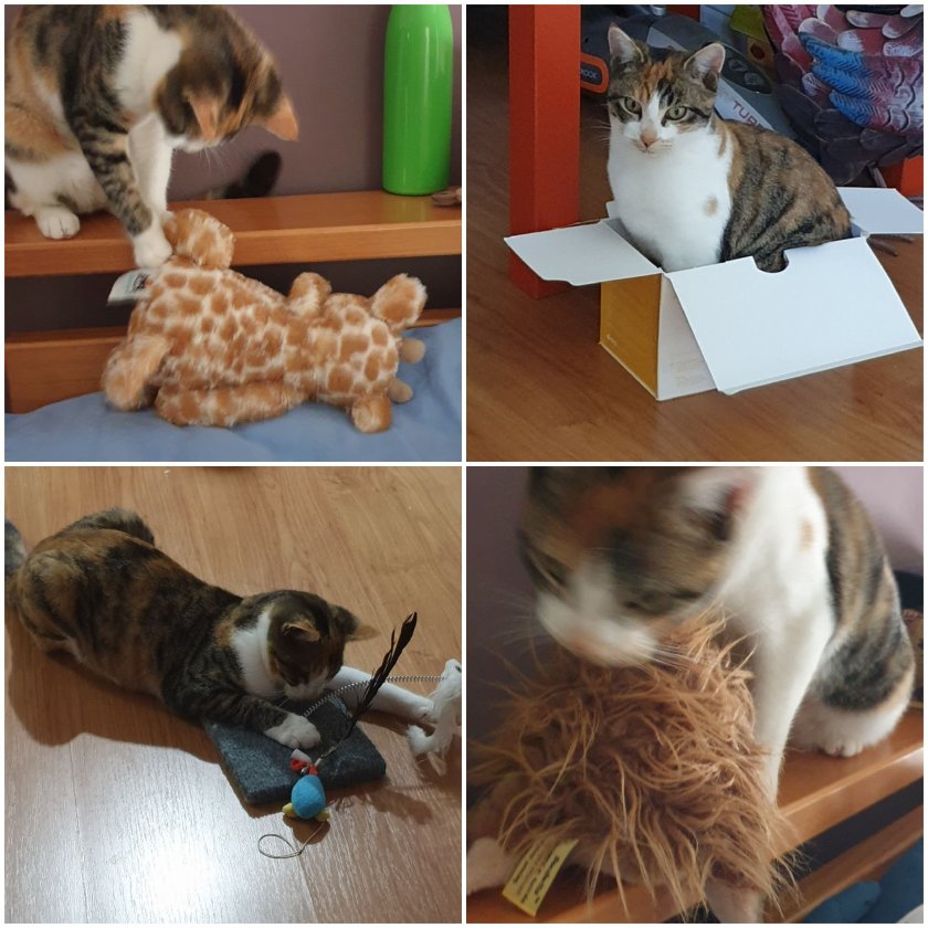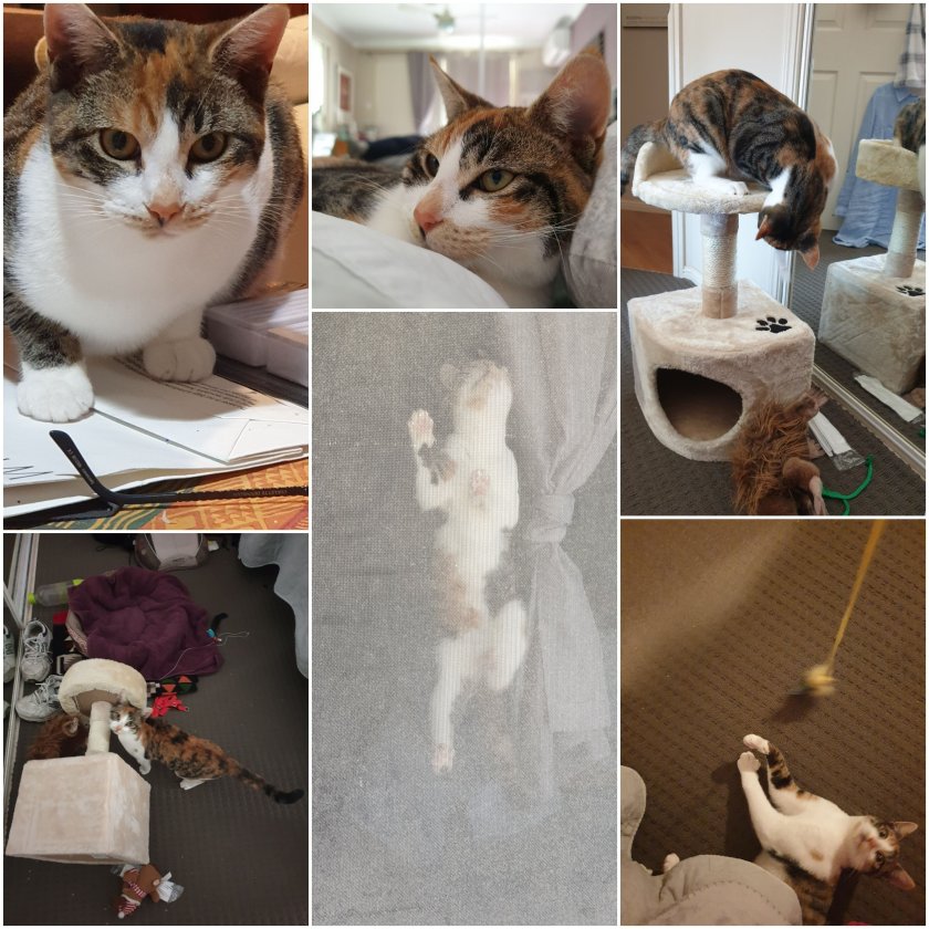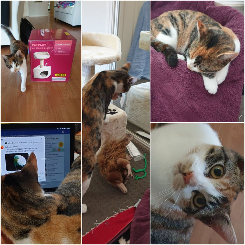 In the meantime, there has been much fun (mostly mine) around the house – with screen door climbing (I wasn’t trying to get out … really), cat fishing (or that’s what Kaz calls it now when she’s playing with my string thingy with me), some diary updating (with a photo of me having paws for thought), some tower climbing and demolition … and in a minute I’m going to start helping Kaz with her puzzles … because that’s fair since I’m already helping Sooz with her Reiki practice.
