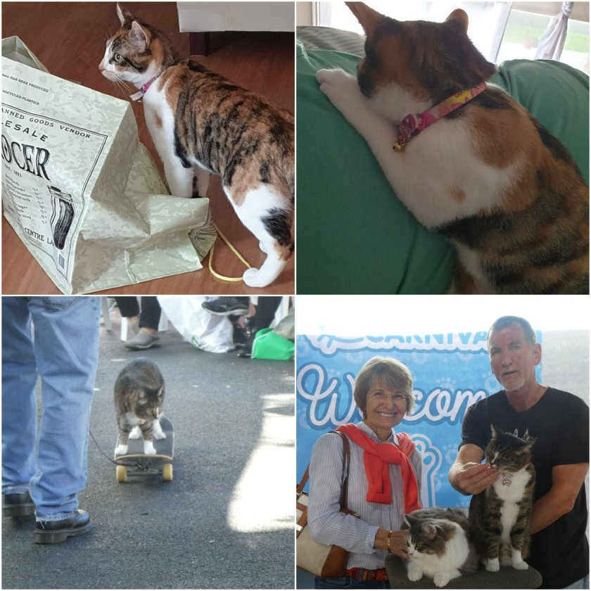 I’m not sure why that Kaz keeps trying to put that thing on me – she calls it a harness and every time I look around there she is with it. I open my eyes from a nap – there she is; I finish eating – there she is; she gets the stringy- thing – there’s the harness. You can’t miss it because it’s pink, and huge and itchy and scratchy and sharp and smelly – well … it is pink. She keeps saying something about once I put it on, I can go outside. That would be good because at this point it doesn’t seem like they’re going to have my cat run on the back deck ready in the next little while.