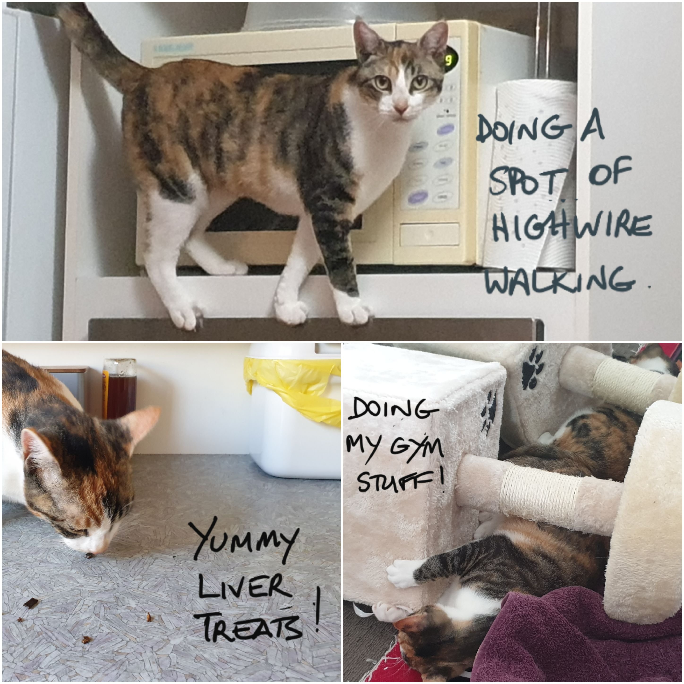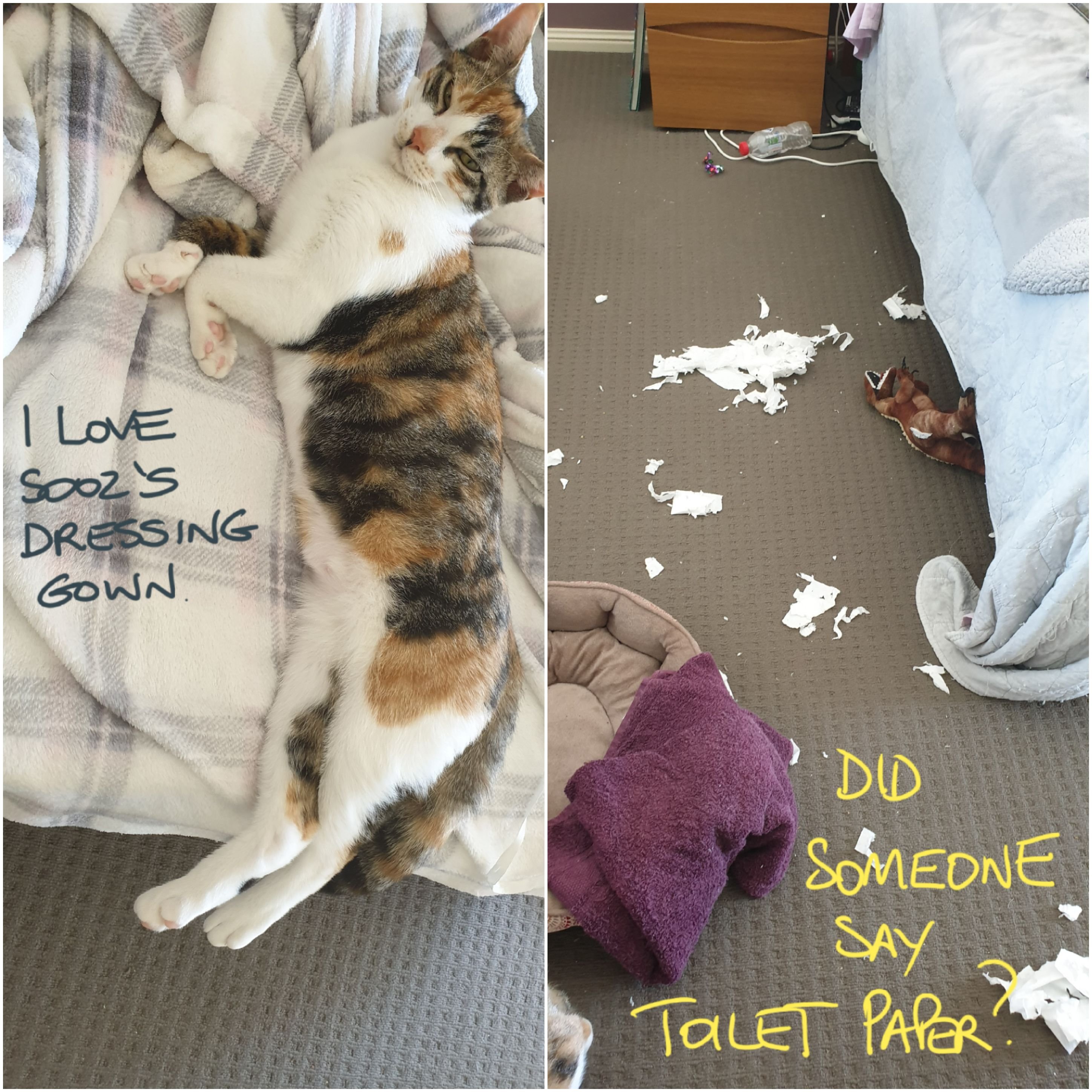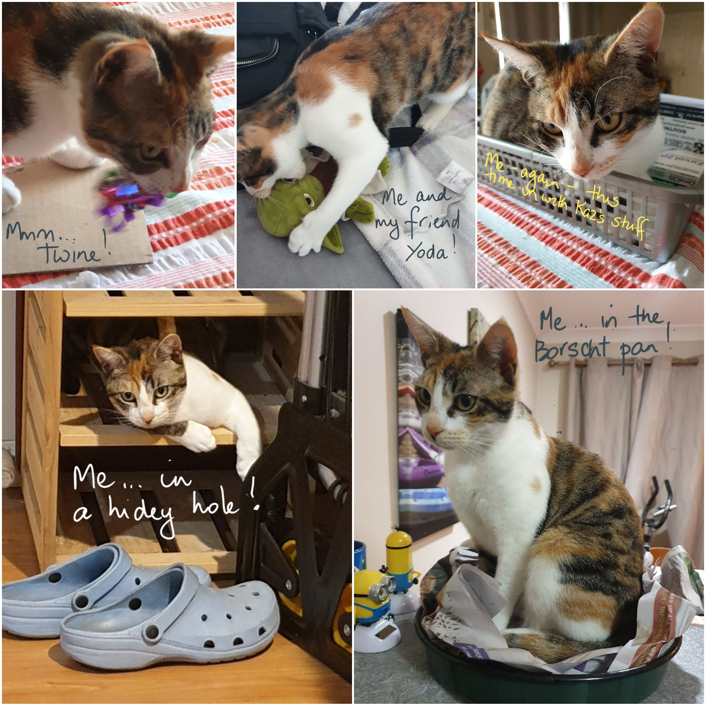 I can’t believe they let Dzambo go home – and just after Istarted liking him and all. I admit I didnt like having him here at first – he was intruding on my territory after all – even though technically he was here first – or so Kaz and Sooz say. He stayed here last October when he was just a kitten and his mother was in India. That explains some of the toys I’ve found around the house … like the mouse and the feathers – I figured they weren’t Sooz and Kaz’s. But that’s not what’s important right now … what is is the other cool stuff he brought with him. The best was his cat tower – which arrived the day before he did – so I had a heap of time to play on it before he got here. I’m glad Sooz and Kaz noticed because they decided they needed to get me one – and it arrived on Friday – and then I helped Kaz assemble it on Sunday night. It took us forever! At least my bestie Dzambo didn’t have to see that! He’d already been sent home on Saturday- and they didn’t even check with me if it was okay! I know it looked as though I was pestering him (and maybe I was) but it was good to have someone else to rub noses with and play with … yes there were growls and snarls and some claws and maybe a scratch or two – but it was all good fun – and after those first few days he wasn’t spending all his time under the couch. And who knew it would be so comfy under there: I’ve been spending a bit of time under there since he left – and yes, I do fit … and I fit in the hammock on the cat tree too!