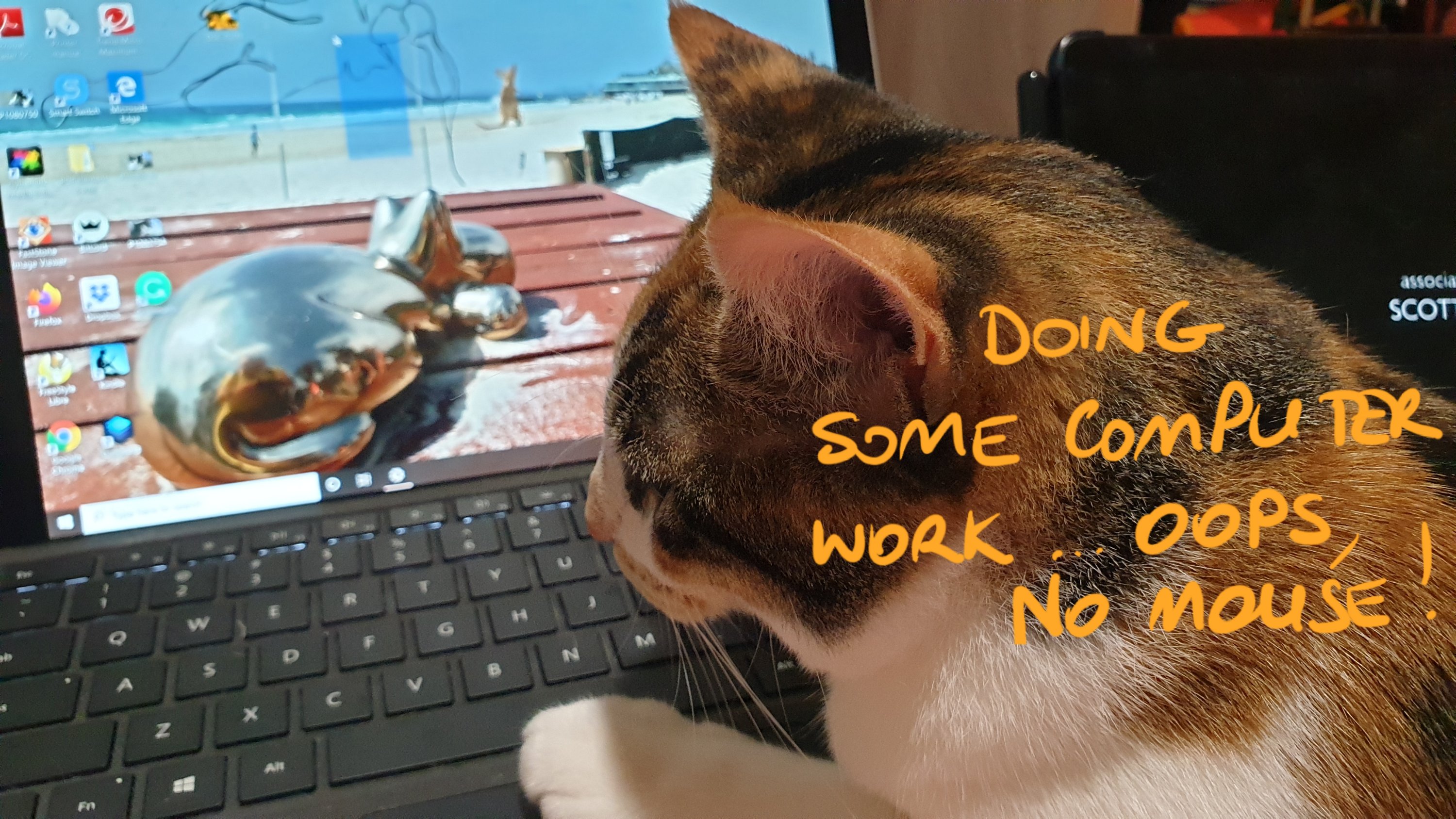 I like it when people bring me presents! So brought me two mice the other day and I love them … well, I would love them both if I could find the other one … but it has gone missing. It may be under the fridge (that’s where Bluey was until Kaz rescued him … and Pinkie who had gone in to bring him out) but we haven’t found him under there yet.