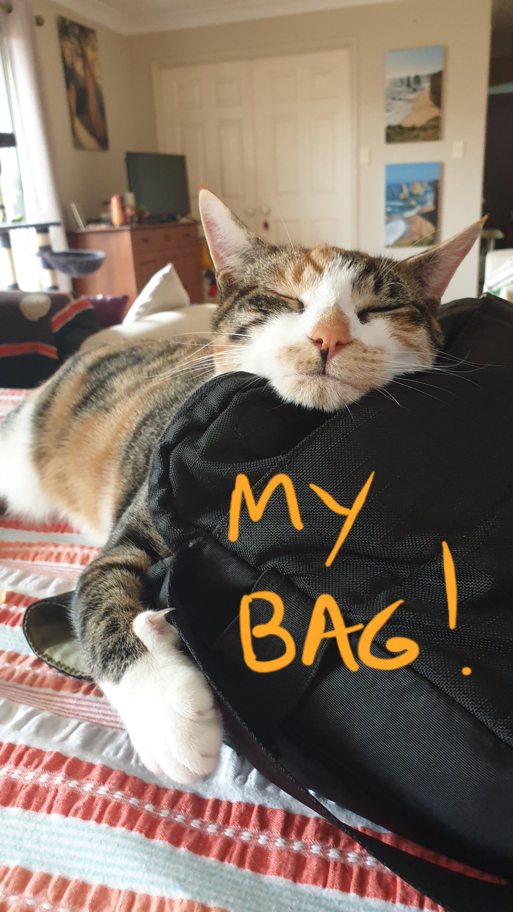 What the hell was that? I don’t know where he got it from but he certainly didn’t take it with him … and now I am worried that Sooz and Kaz will start using Wayne’s “bottle that shoots water at cats”. What the…!?! So, yes, we had an overnight visitor this week – Kaz’s brother – and even before he arrived I knew he was going to be trouble. Seriously … how can someone not like cats, especially when they’re as cute as I (am)? I did wear him down though … and he actually only did shoot (okay, squirt) me a couple of times … but only because I am an exceptionally fast learner! Someone definitely needed to tell him (and yes, I am looking at you Kaz) that I am allowed on the table, and in the bench, and in the fridge, and wherever I darn well want to be! Hmmmmm.