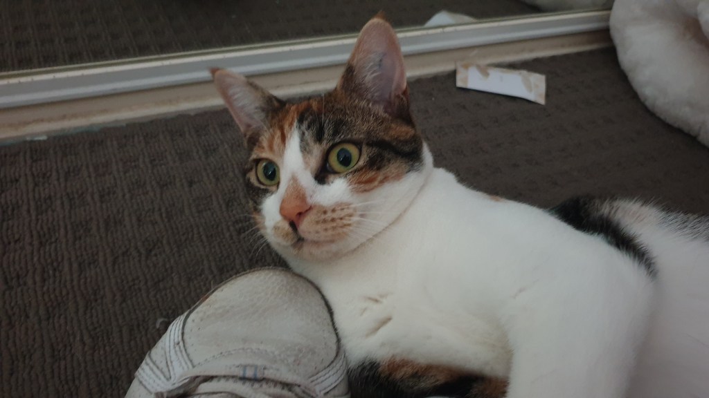I really don’t understand why Kaz keeps moving those plastic boxes back and forth in my bedroom. She tells Sooz it’s so she can organise in there and certainly it has changed in the last week or so. The bookshelves are gone … and there’s a desk – and the desk is covered with furry animals of varying sizes – including my big bear – and more of those plastic boxes! There’s enough room on the couch (which is now under the window) that I can stretch right out – on my back! Bliss! And that’s not even taking into account the metal shelves that have moved back into the office which I have been sleeping on too. There’s nothing like clear surfaces – and there are more now than ever!