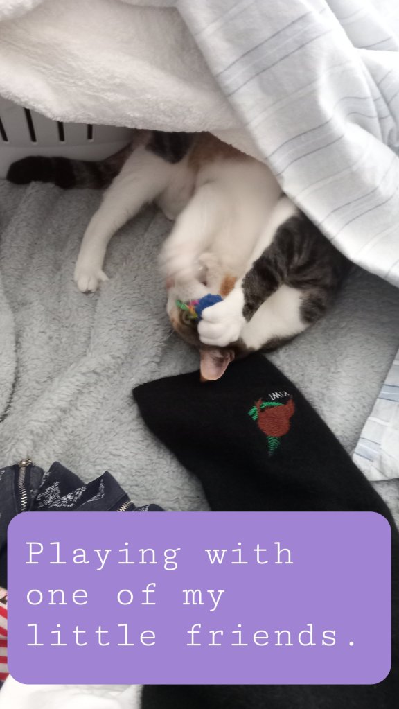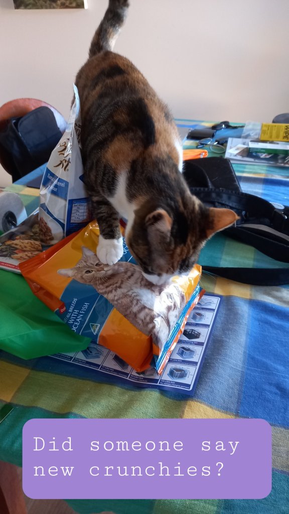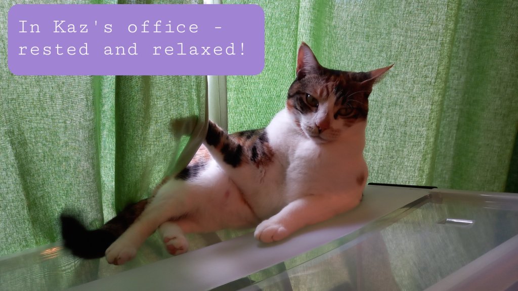It’s actually not bad being a cat here – most of the time. They let me eat what I want – most of the time. They let me sleep where I want – most of the time. But they are still locking me out of the bedroom at night, even though I have been trying to show them that I actually can sleep in the bedroom without giving them – or Kaz’s sleeping machine – grief.