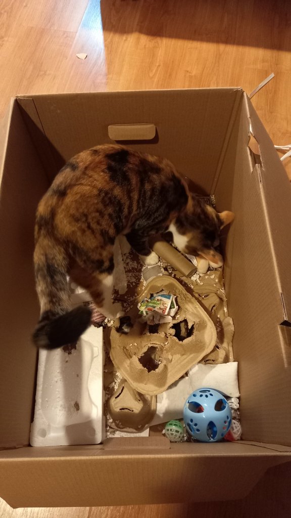 Watching a bit of tv. Mmm mmm … box.Found another cupboard to be in …