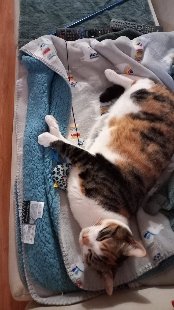 Me and Mr Stringey-Thing on the electric blanket.Me ... sleeping out on my bed … without an electric blanket.