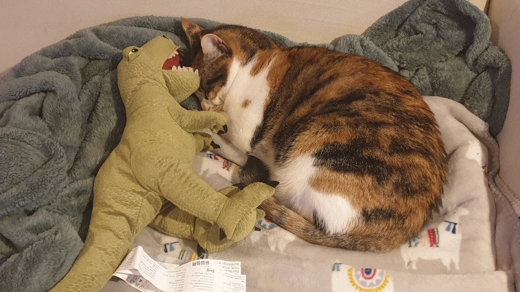 It’s getting colder now and I spend most mornings in Tibet, especially if Sooz still has her electric blanket on. When they went to Ikea with Aunty M the other day, they bought me another dinosaur – a big green Trex. Whenever she thinks I’m asleep on the couch now, Kaz gets him and puts him (and sometimes Matilda too) next to me. It seems to make her happy! Humans, hey?