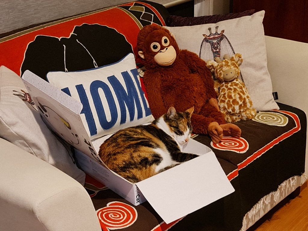 Otherwise they have been looking after me nicely since my return although I’d prefer it if Kaz would move my transport box (which looks surprisingly like a cage) back outside to wherever she found it. I’m sure (am I really?) that she doesn’t actually mean to keep me on edge – as if the thunder and lightening of this week’s storms aren’t doing that enough!