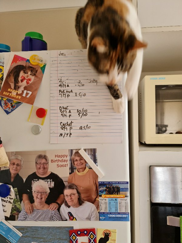 I cannot believe they did that! They told me they were going out to lunch and when they came back they didn’t smell of lunch at all. They smelled of coffee and … sniff … sniff .. what’s that? Odour of cat? And not just any cat … I’ve smelled that one before … on Aunty M … oh wait, oh no, tell me it isn’t so … they have been with Mimi … yes, that’s right that would be my arch-nemesis Mimi. What were they thinking? Did they think I wouldn’t notice. Haven’t they heard … oh wait, they were the ones who told me … that cats have a more acute sense of smell than dogs … and the only reason that they don’t use us for drug-sniffing at airports is that we would knock every suitcase off the conveyor belt! Hmmmm … that qualified them for a couple of days in the “sin binny-thingy” (Is that a thing? If not, remember that sports terminology – or is that sports? – is not really my thing.)