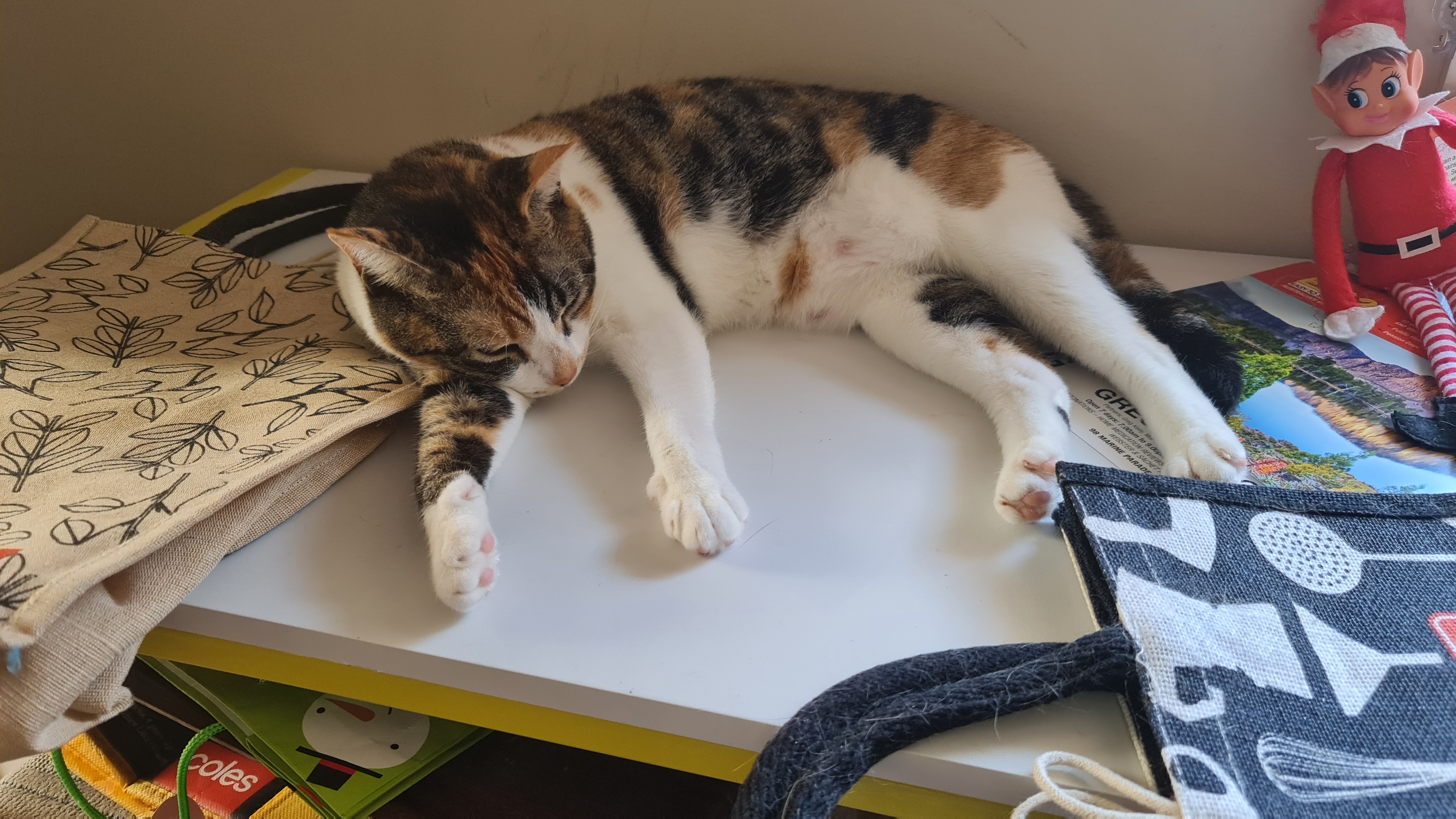 Meanwhile, it has been hot hot hot here of late and I am currently finding some small relief by sleeping on the ironing board in Sooz’s studio – or it will be when Kaz finally gets the rest of her stuff out of there. It’s quiet in there as well … no noisy fans or air conditioner to keep me awake. The sounds of Aiden (our dreamboat and very tall plumber with the lovely thick socks that I love to smell) on the roof the other morning was enough to do that. Heaven knows when we will see him again … now he’s finished everything he had to when installing their new hot water system and taking the old one away!
