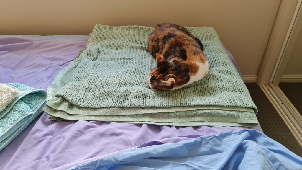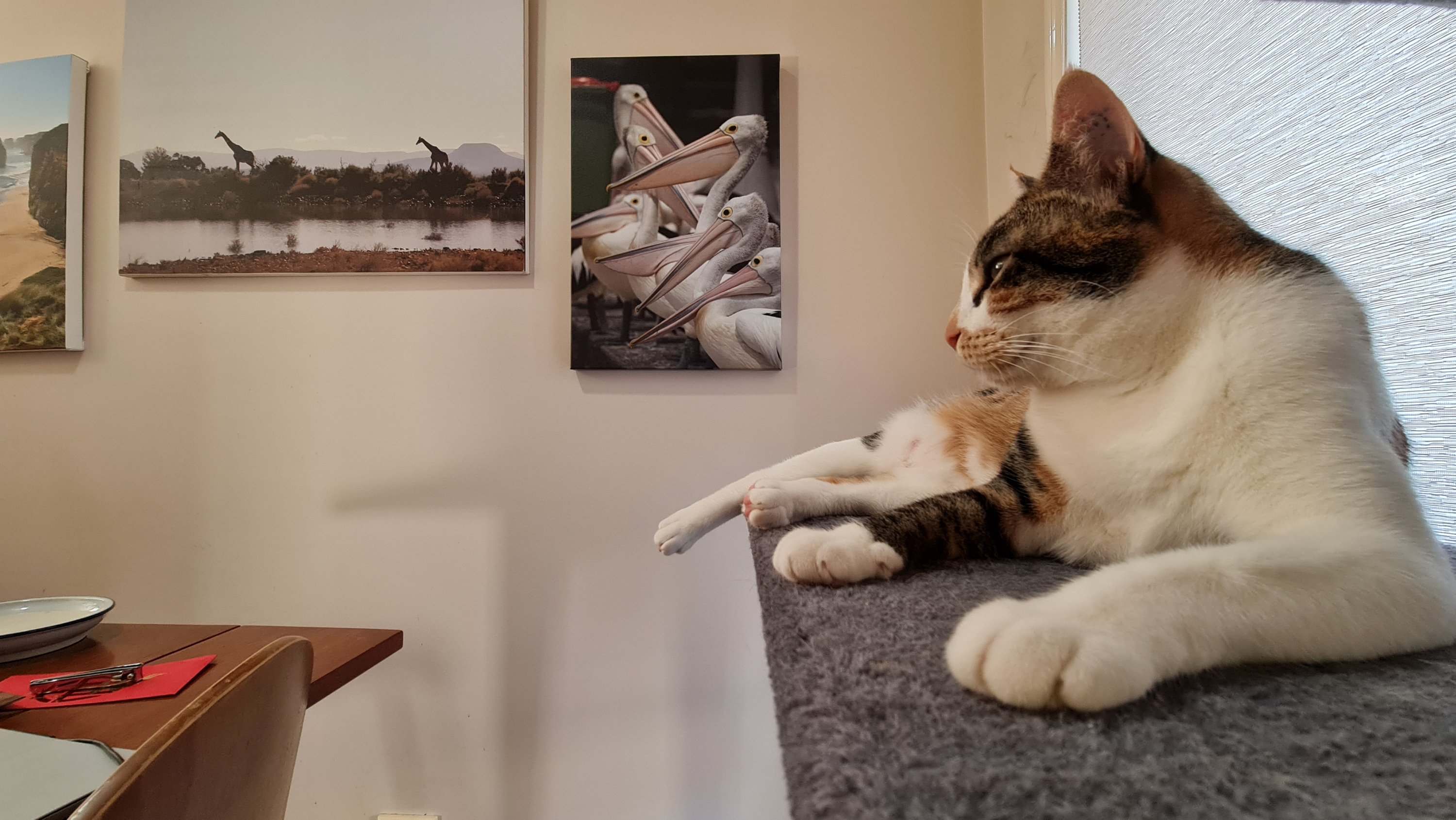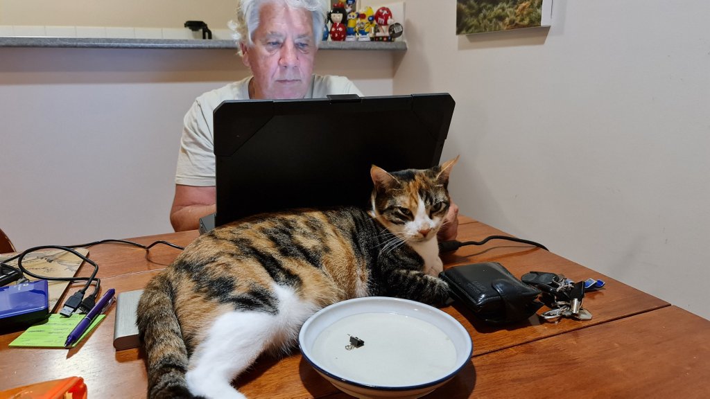 Kaz and Sooz seemed quite happy to have him here … and they certainly were making sure that I didn’t get to see that much of him while he was here … they were always whipping him out somewhere “down to the water” or “to Paradise Point for a picnic” or out to that Trivia thing they always seem to be going off to. Wa doesn’t seem to mind me that much … and vice versa. I let him share my bed with me … and I even woke him up yesterday morning … and it wasn’t easy. First I knocked with one paw and when that didn’t seem to work, I started bashing the door (to our room … not sure why he didn’t realise he had locked me out!) with both my hind legs. Finally at 5:30am he came out so we could have a cup of coffee and a chat … I think he understood when I told him that Sooz and Kaz don’t usually get up until late morning (heh heh …. and I think he may have believed me!).