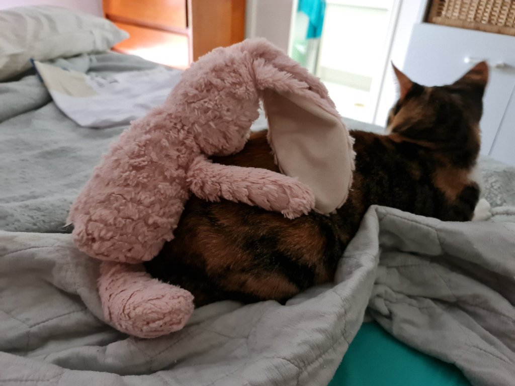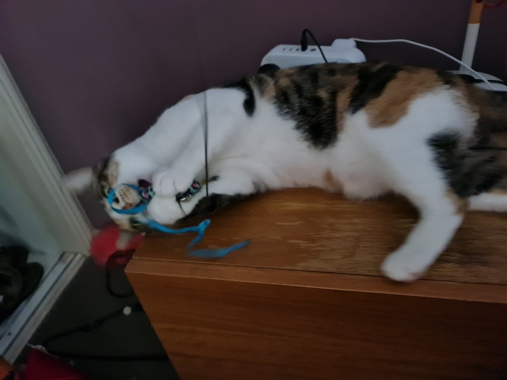 Is that a steam train – or some kind of angry robot come to take over the world? Or a bear in the forest? Snoring? Is that snoring? And why is Kaz sleeping on the couch in the living room? If she does go to sleep out here, it’s almost always at the table! (In fact, she was asleep there just a second ago!) Ahhhh … she’s not well and she was watching television there and just laid down and went to sleep. Given that noise, I guess I am kind of glad they lock me out of the bedroom at night! I don’t know how Sooz can put up with that … especially with the door closed … you would think the walls would be moving in and out. And why doesn’t Kaz wake herself up with the noise … does she have a hearing problem? Or is she just so tired at night – and during the day when she’s not well – that she can sleep through what sounds like dinosaurs thundering through the house? You know what this means? It means I’m not going to tippy-toe through the house at night anymore while they’re sleeping! Let the Games begin!