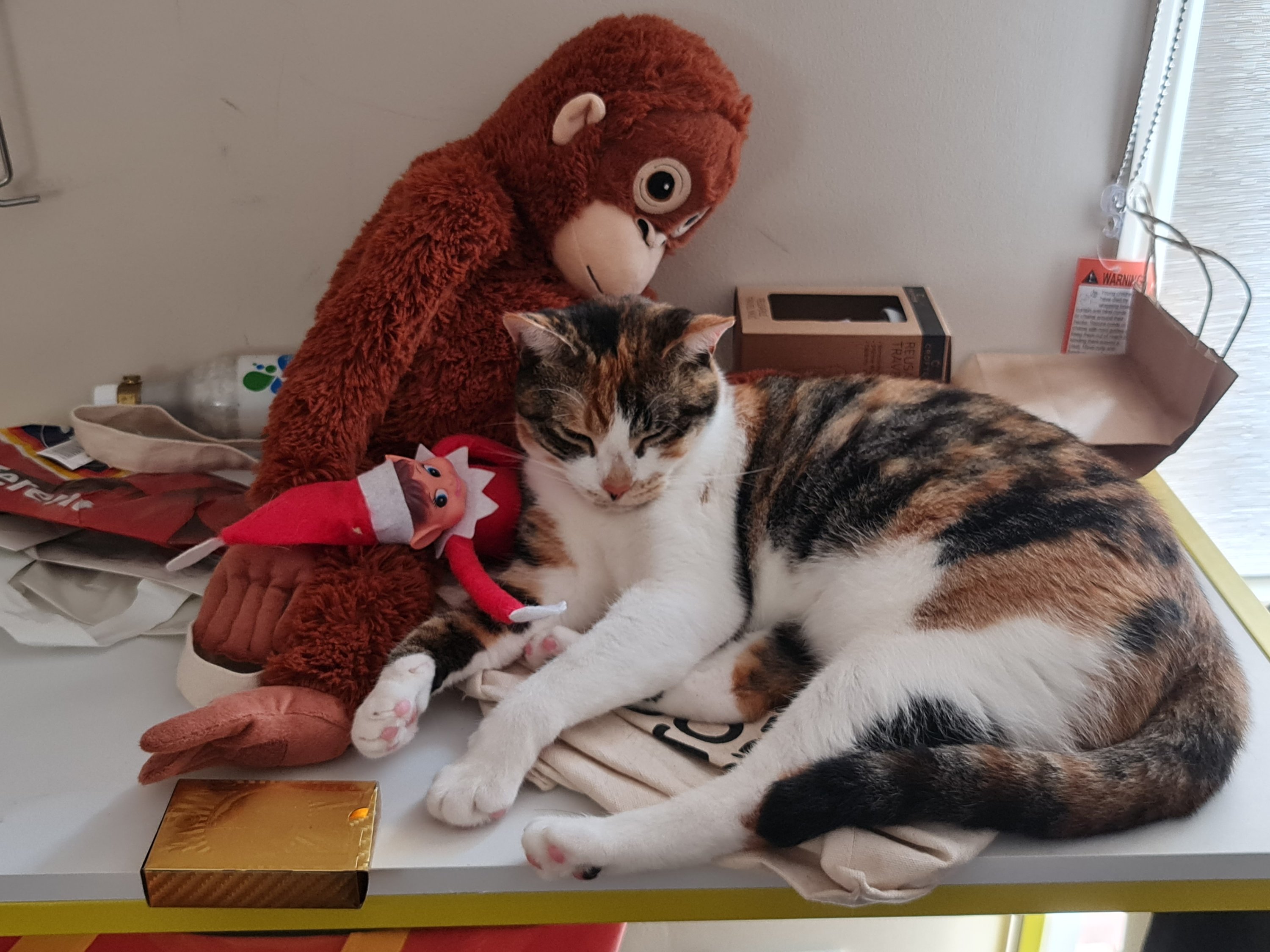 Meanwhile, Sooz has been behaving herself – kind of. I say “kind of” because she seems to have forgotten she is intelligent! You want proof? How’s this: she’s watching three very questionable programs presently: MAFS (which apparently is what everyone calls it because they can’t be bothered with its proper title or maybe it’s because they can’t remember/pronounce it); something about extreme carbohydrate loading and its deleterious effects, and another about people who can’t throw “stuff” away (OMG – that could be them!) – and no, it doesn’t make it a better choice just because other people she knows watches them too (her dentist!!!). I guess it’s part of the human condition – needing to connect with other people over dreadful programs – why can’t they just sniff each others butts like dogs do? Yes, I can see you wondering what it is that we cats do, but if you don’t know, I can’t tell you.