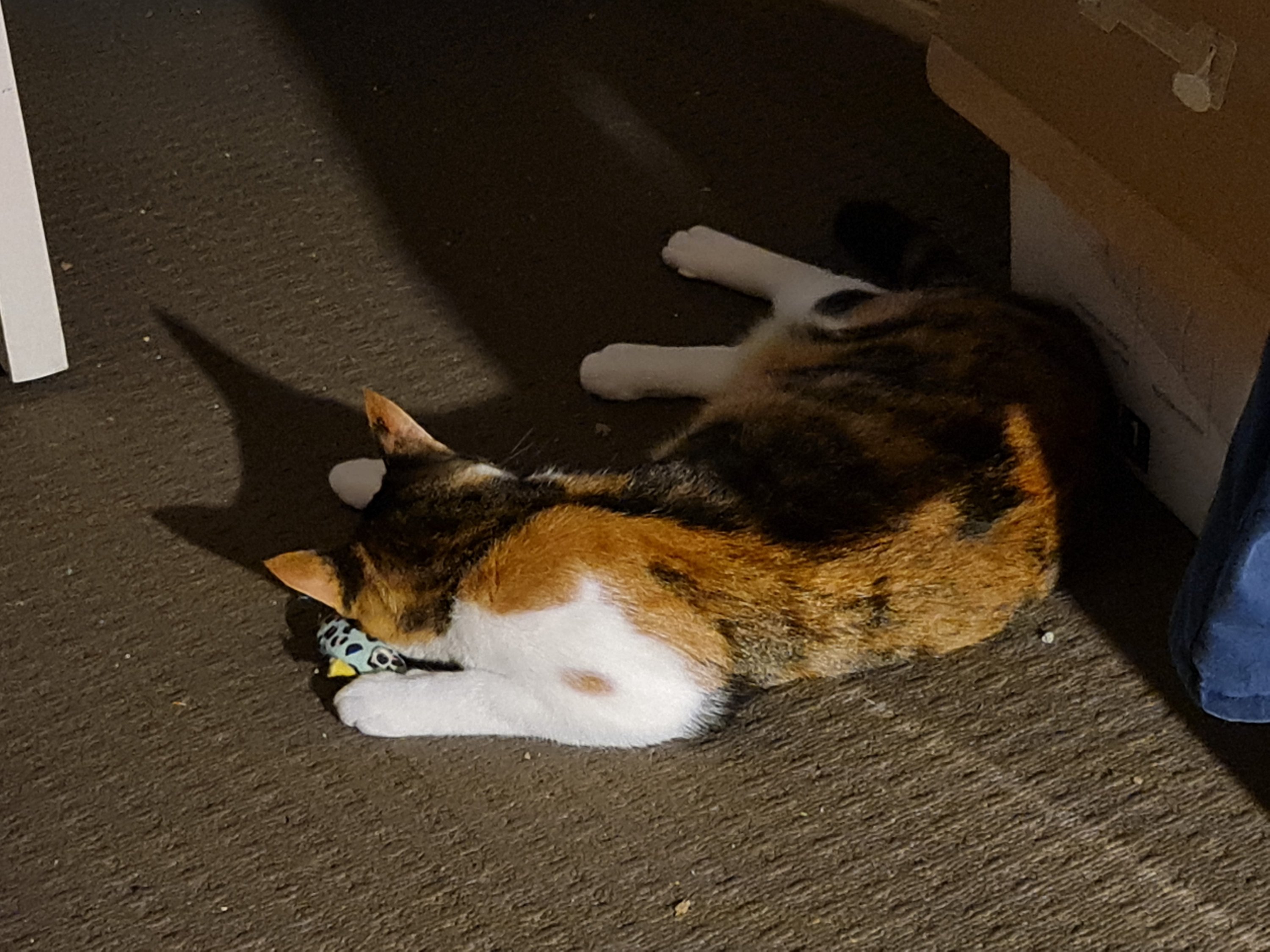 Oh my goodness – can they make any more noise around here? Don’t they know that I have only one job (yes, we all know they think it’s to torment play with Kaz but it really isn’t!) and that’s to sleep … and who has a chance with that horrible caterwauling – or something even way worse than that, that Kaz has started doing … as though her “bear in the forest” isn’t bad enough. If she keeps this up I am going to have to seriously consider my options: moving out to the garage or even further afield, finding some way to use noise-cancelling headphones (do they make them for Nigeys?), imposing on Sooz’s kind nature so she intervenes or, if all else fails, take an axe to hide that darn trumpet. Okay, there’s no denying it’s a thing of beauty and I’d probably even have a go if she’d leave it out of its case, but a dozen or so lessons would not go astray Kaz!