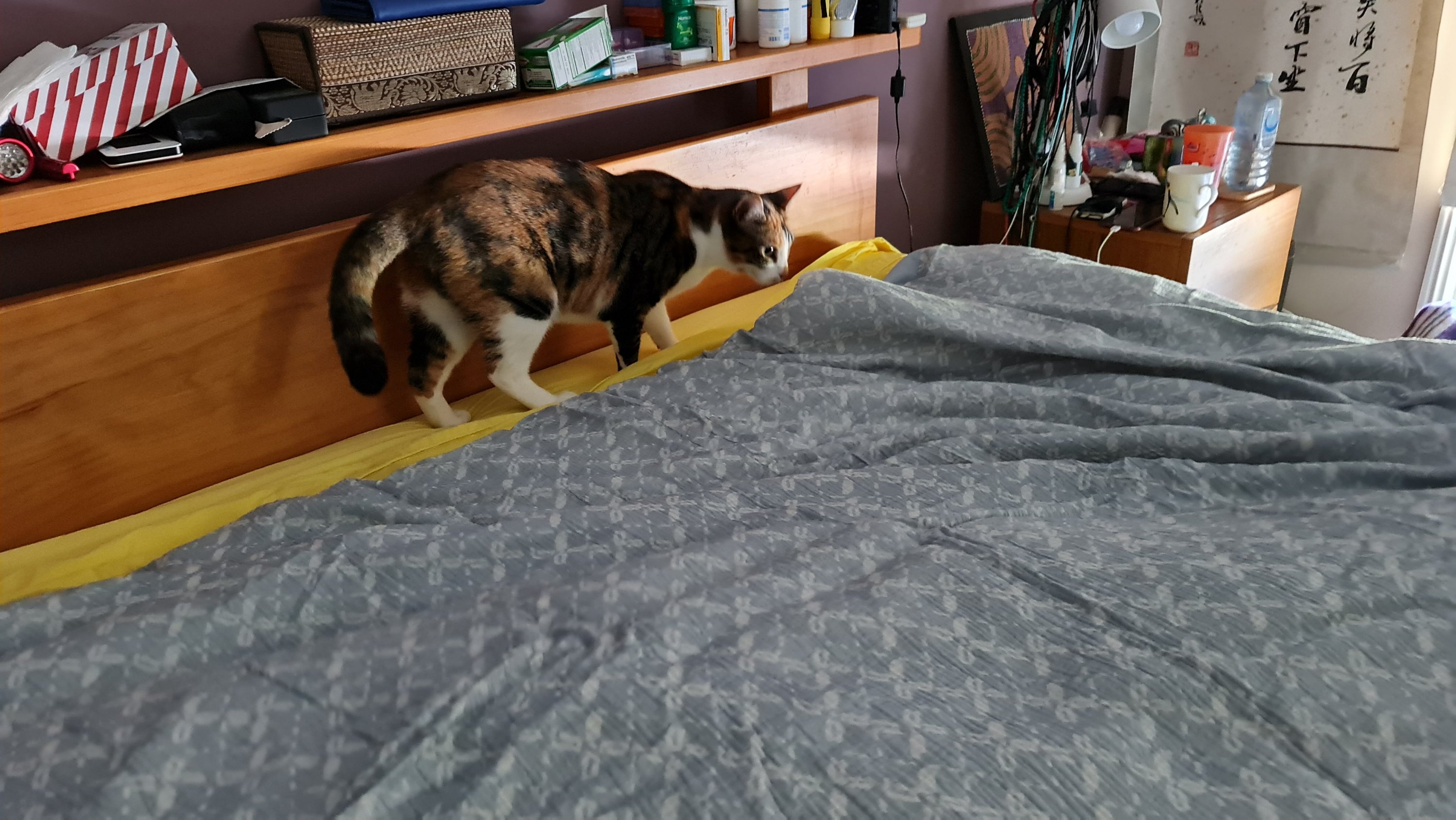 That dashed red and wire cage came out of its hiding place on Tuesday afternoon and Sooz scooped me up and threw me in to it – despite my vociferous and dramatic protestations – and then slammed the lid shut. What the? Then Kaz threw a towel over me and the cage -and luckily didn’t say “Ta da” or “Abracadabra” or anything stupid like that because OMG I could have disappeared. What happened was much worse though … she took me to the vet! And do you know what they do at the vet? They take your temperature! And not in a nice way! Then they cut my fingers off (well, trimmed my claws) … and forced tablets down my throat. And if that wasn’t bad enough they put me on the scales (5.25kg) and wouldn’t let play on the cat tower in the room where they were keeping me prisoner! Yes, yes, I know I’m being a teensy little dramatic but it wasn’t a very nice experience at all. I’d like to see someone take Kaz to the vet and see how she likes it when they shove a thermometer you know where! And if that wasn’t bad enough, while we were waiting to see the V-E-T (yes, I can spell Kaz) there was a girl there who said hello to me – and put her fingers in my cage and I could tell by the look of horror on Kaz’s face that she thought I was going to bite her! Of course I didn’t … because I’m a good girl I am. But I will admit it was nice to get home and resume normal activities!
