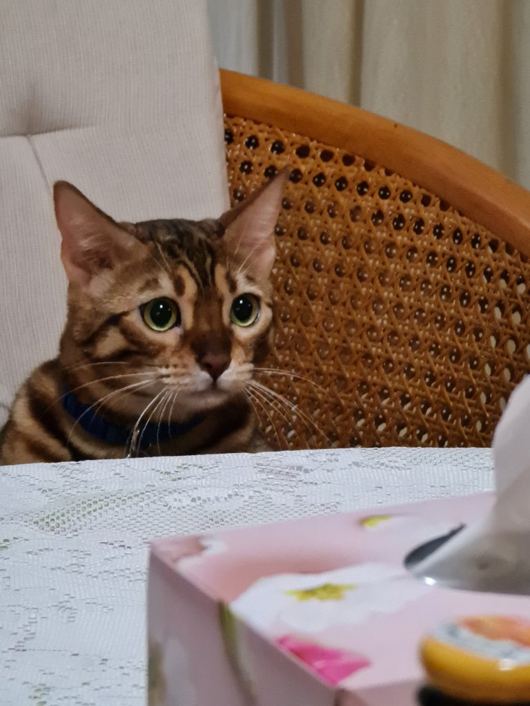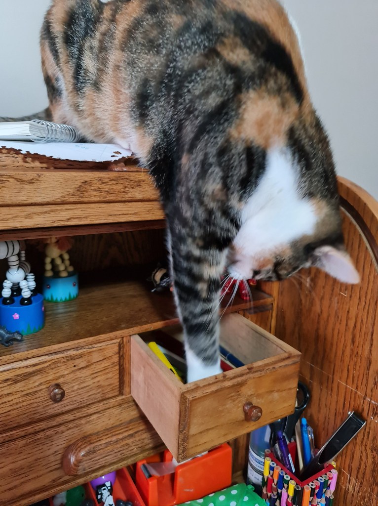 And apparently she doesn’t even try to hide it – quite the opposite in fact. She isn’t allowed on the table but she does have a seat at the dining room table – and when she’s ready for a nap she just lies down and pops her head under the table cloth – leaving the rest of her not under the tablecloth. She is very pretty though … if you can look see past her bottom! Mind you, though, she must have something going for her but she gets to go outside … a lot. Me … they keep me trapped inside and Kaz and Sooz thwart my every attempt to enjoy the great outdoors … unless I start wearing the harness. I call it a HA…ness (with a bit of contempt and sneer thrown in for emphasis), because we all know that that is never going to happen!