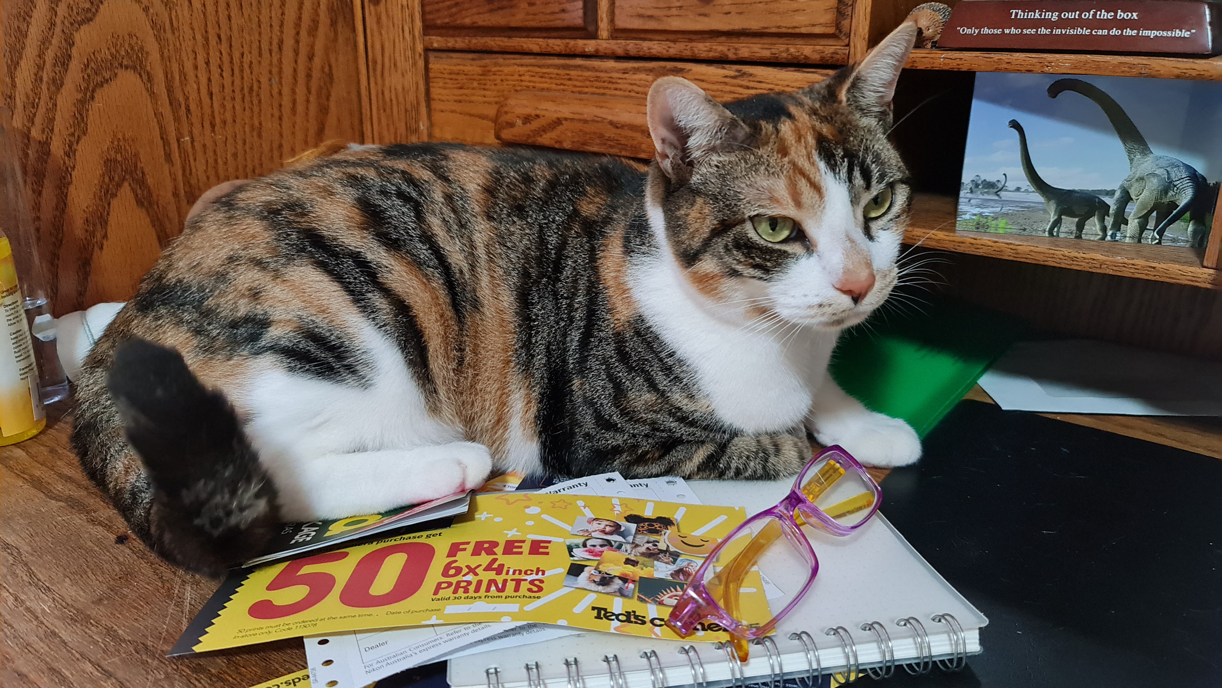 Sooz and Kaz seem to have been spending lots of time with other cats of late … I know they saw my ArchNemesis Mimi the other night when they went out for dinner for Mother’s Day with Aunty M and her mother … how could I tell? They stank of Mimi … but, and this is probably the real reason, Kaz had photos of Mimi on her phone. Yes, there is no denying she is pretty … but that doesn’t mean she is cuter than I am! And okay, she doesn’t really stink just because I think she is a stinker!