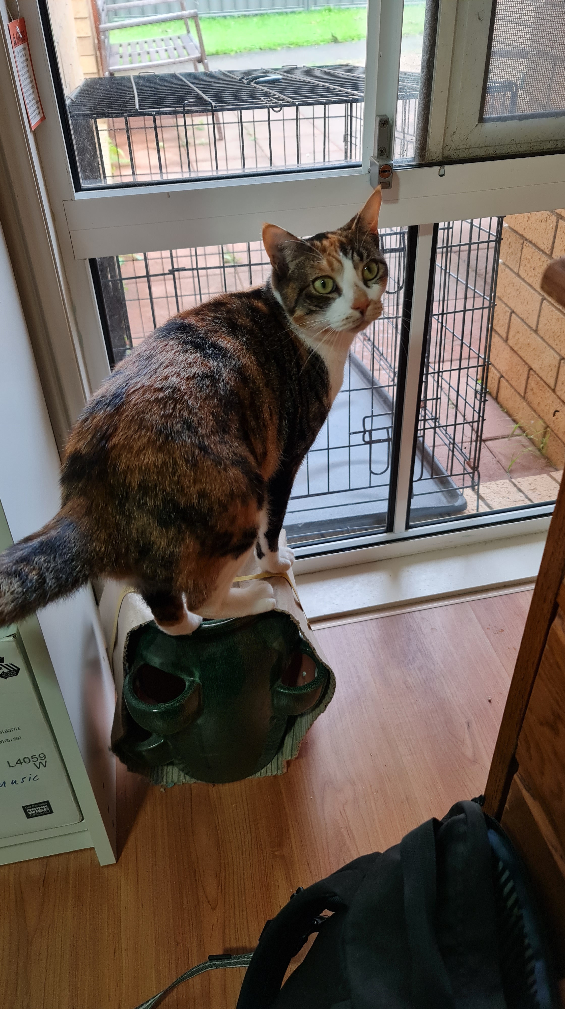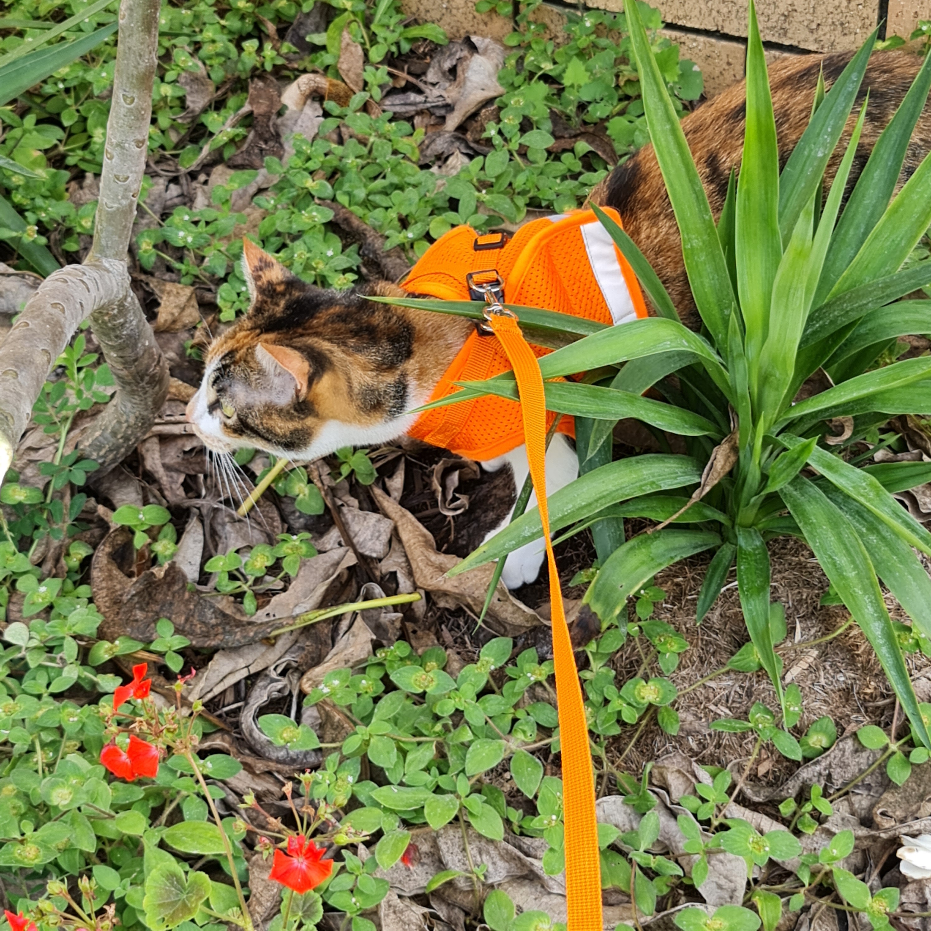 Well can you believe that Kaz finally took me outside again? It has been ages since I’ve been out in the yard and that’s through no fault of my own. Any time they open the door I’m there … and I even managed to get out a couple of times with Sooz but she just scoops me up and pops me back inside. Why is it so difficult when Kaz comes out to get me? She panics so much … and I don’t know why that is. Is she expecting me to scarper? Take off over or under the fence? Not likely – have you seen how high that fence is … and maybe when I was a kitten I could have shimmied under the fence but that ship/cat has sailed!