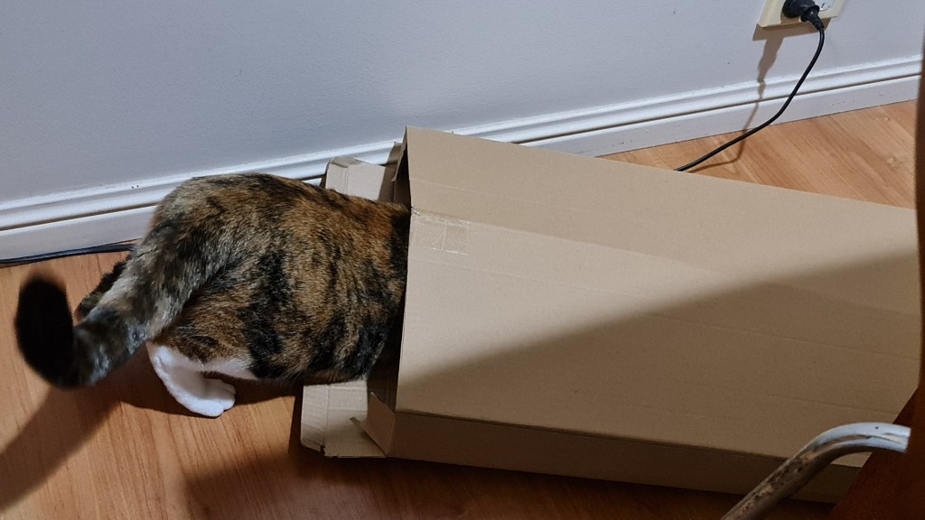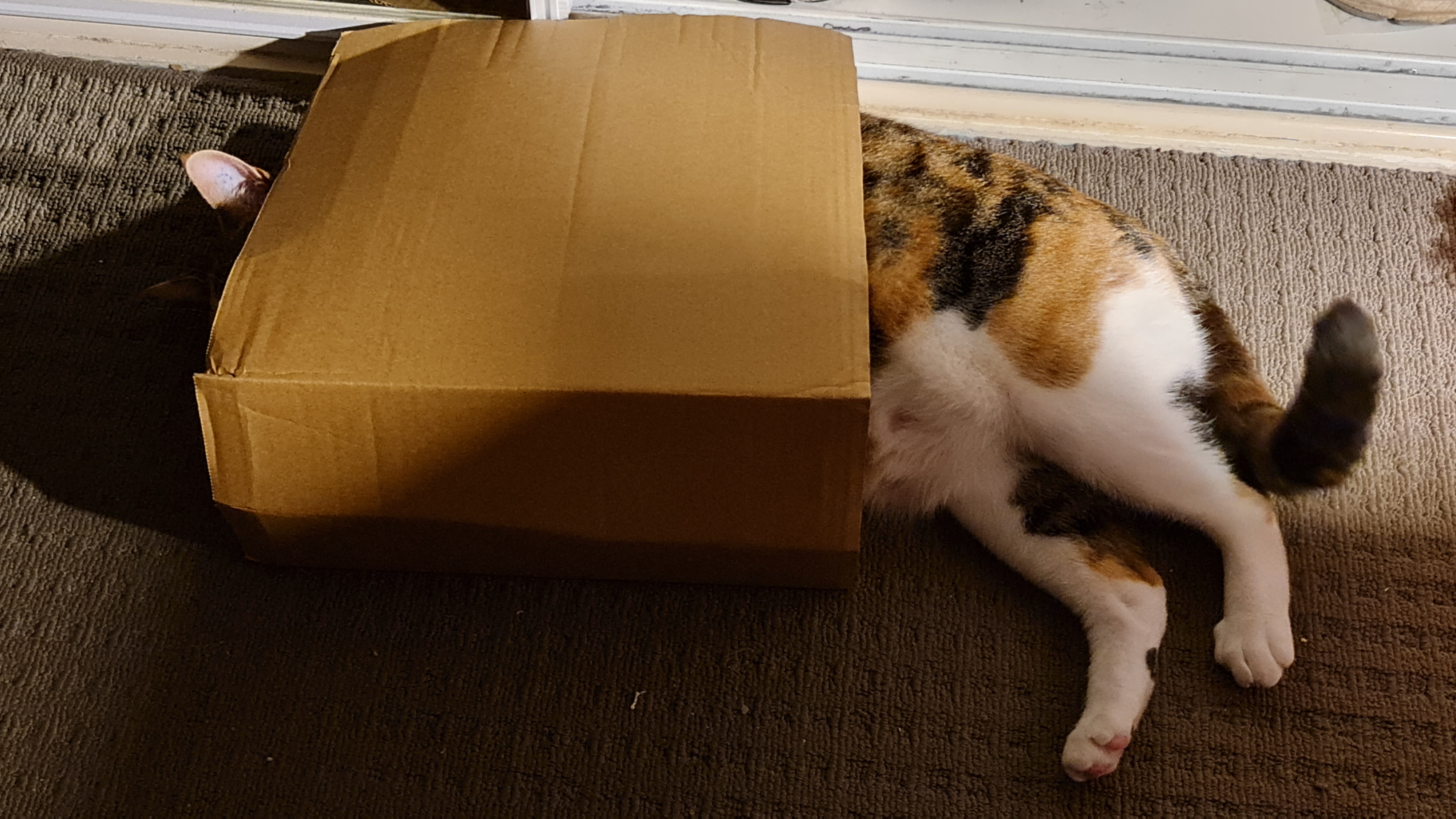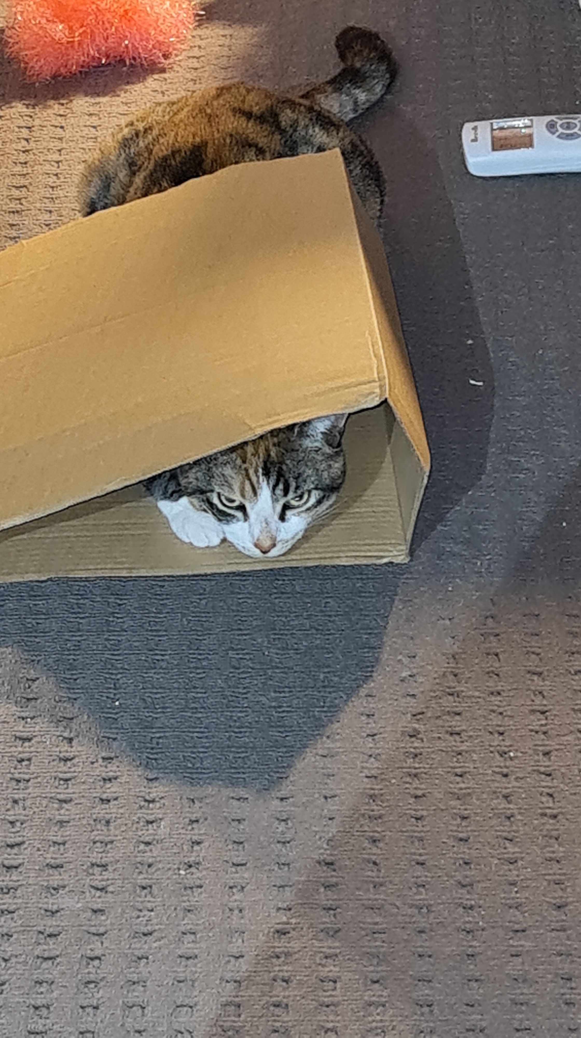 I surprised Kaz last night … just as she was getting ready for bed (and it was a late night because she was trapped by that television again) and checking the doors and lights for the evening, I heard her and ran in under the Mummies’ bed … and I made sure she saw me otherwise it’s absolutely no fun. I was interested to see what she would do … I know she can’t reach me under the bed – but I wasn’t sure which of the usual tricks she would play – rattling the cat cookies container, dangling the fish toy near the edge of the bed … that type of stuff. It never works but she keeps trying … as though, magically, one day I will forget that I’m the smart one in this household. To her credit, though, Kaz didn’t try any of her usual tricks … she just sat on the side of the bed, quietly telling Sooz, who by this stage was awake, that I was in the bedroom. Then nothing. Of course, I had to come out and have a look … and still Kaz didn’t pounce on me. That didn’t come for a good few minutes when nonchalantly she stood up from the bed and went to look in the wardrobe … and then she had me. I am reminded of that scene in Jurassic Park when the velociraptors ambush the Robert Muldoon character which he only realises when one of them is standing right next to him … “clever girl”! I am going to have to watch her … in fact, I’m going to keep an eye on both of them. I don’t know how, but I think they might be getting cleverer (Is that a word? Kaz tells me it’s a word!)