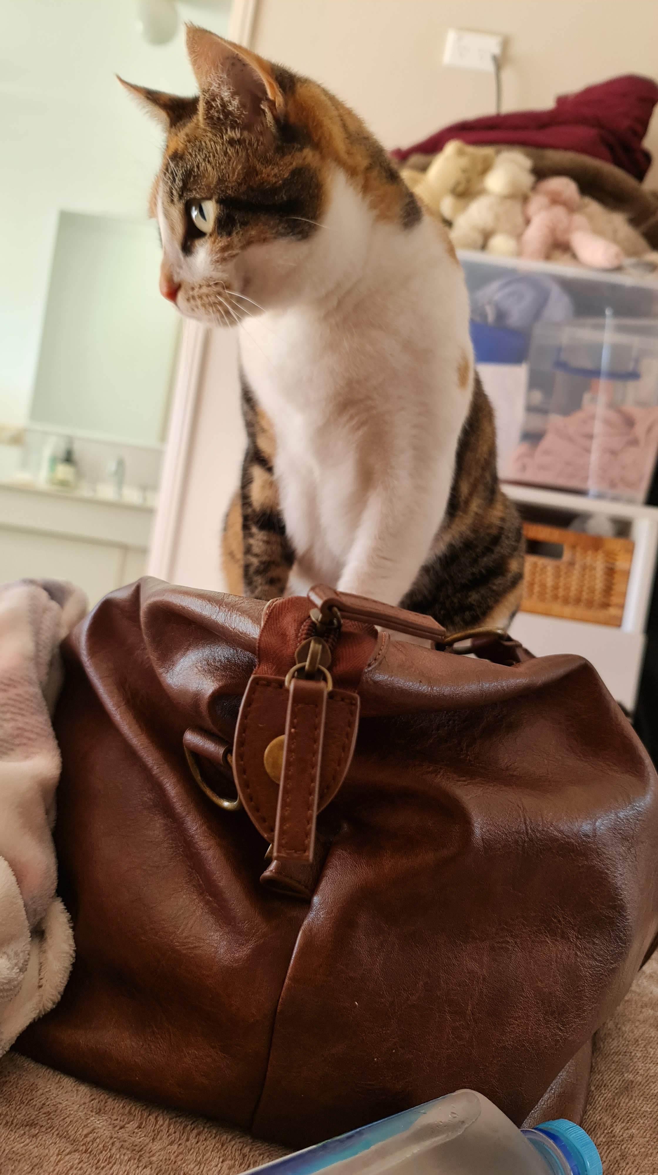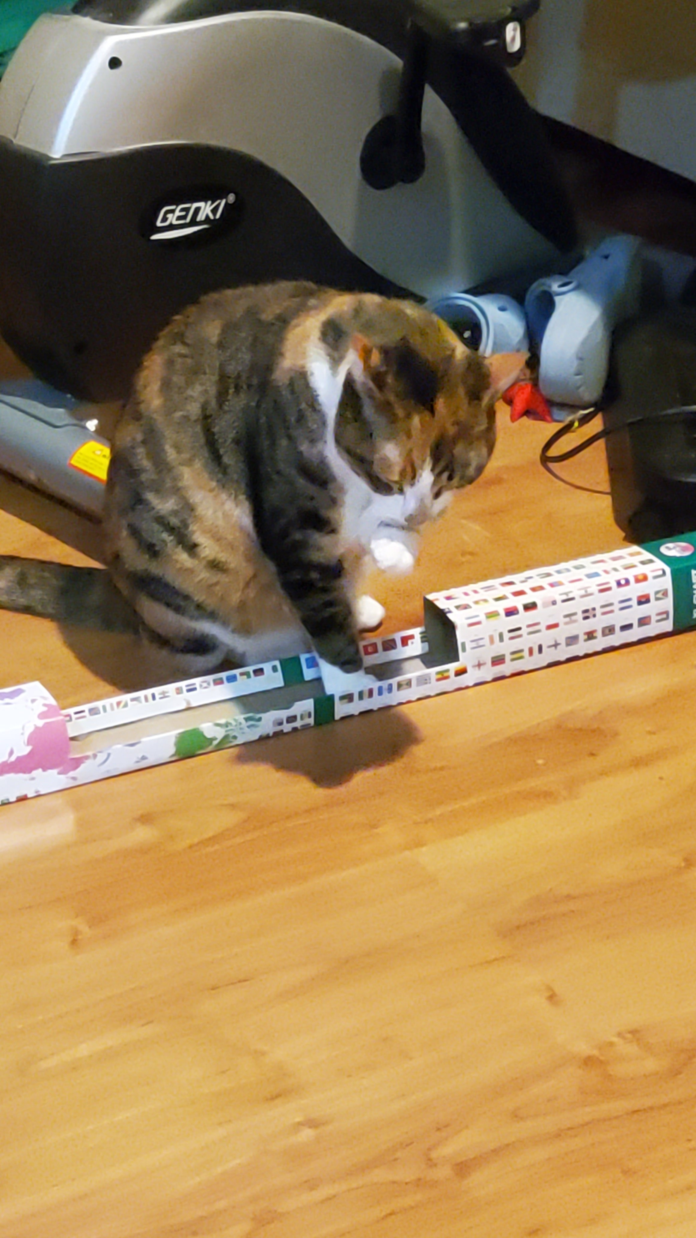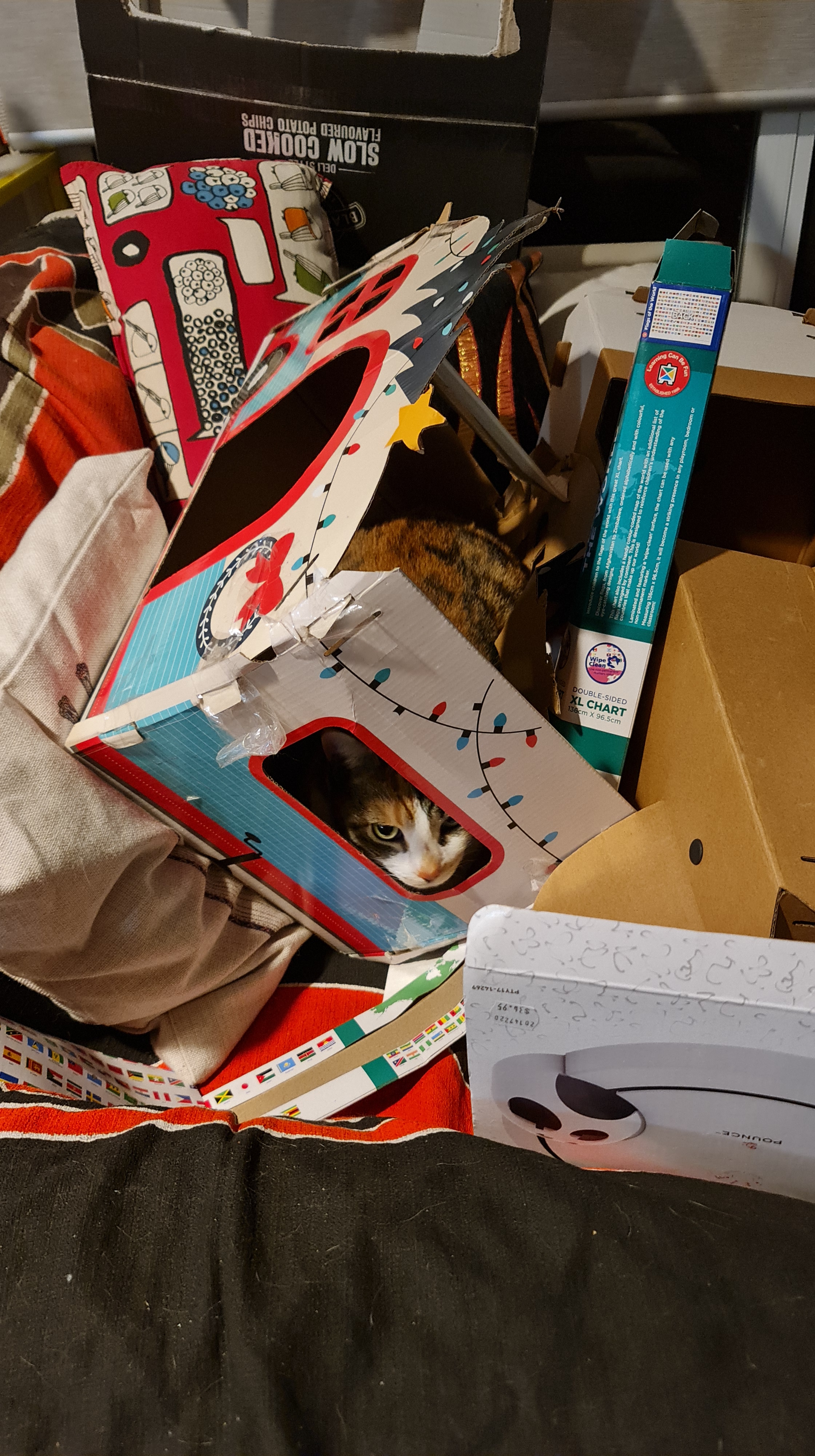 I surprised Kaz last night … just as she was getting ready for bed (and it was a late night because she was trapped by that television again) and checking the doors and lights for the evening, I heard her and ran in under the Mummies’ bed … and I made sure she saw me otherwise it’s absolutely no fun. I was interested to see what she would do … I know she can’t reach me under the bed – but I wasn’t sure which of the usual tricks she would play – rattling the cat cookies container, dangling the fish toy near the edge of the bed … that type of stuff. It never works but she keeps trying … as though, magically, one day I will forget that I’m the smart one in this household. To her credit, though, Kaz didn’t try any of her usual tricks … she just sat on the side of the bed, quietly telling Sooz, who by this stage was awake, that I was in the bedroom. Then nothing. Of course, I had to come out and have a look … and still Kaz didn’t pounce on me. That didn’t come for a good few minutes when nonchalantly she stood up from the bed and went to look in the wardrobe … and then she had me. I am reminded of that scene in Jurassic Park when the velociraptors ambush the Robert Muldoon character which he only realises when one of them is standing right next to him … “clever girl”! I am going to have to watch her … in fact, I’m going to keep an eye on both of them. I don’t know how, but I think they might be getting cleverer (Is that a word? Kaz tells me it’s a word!)