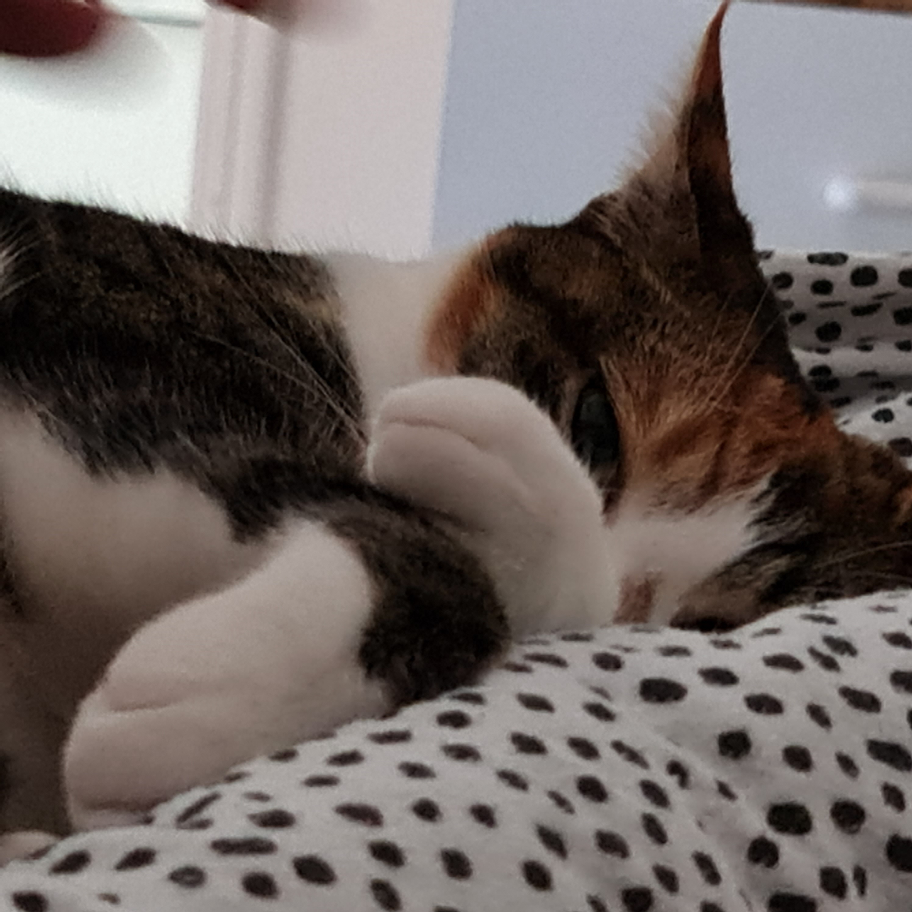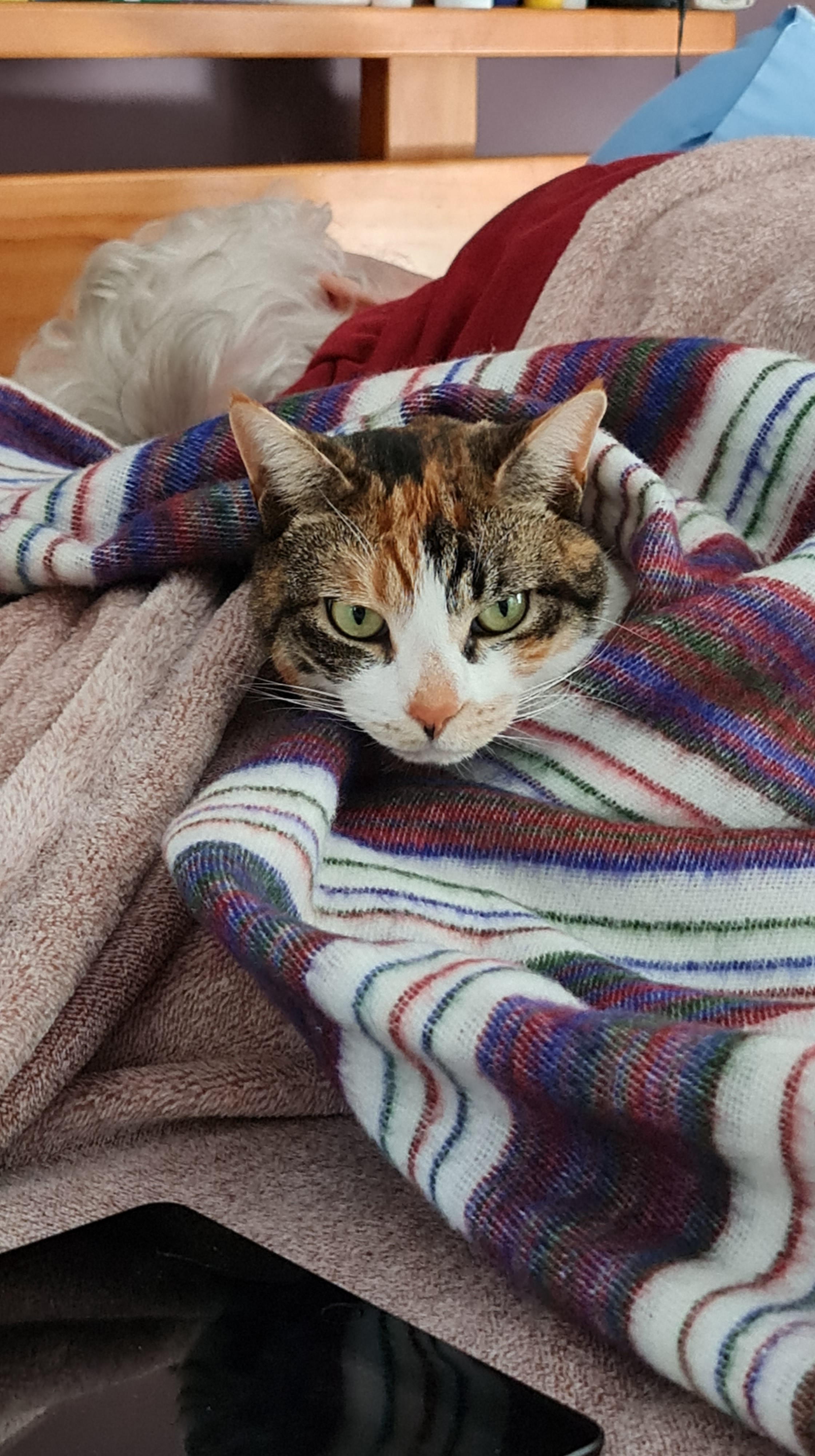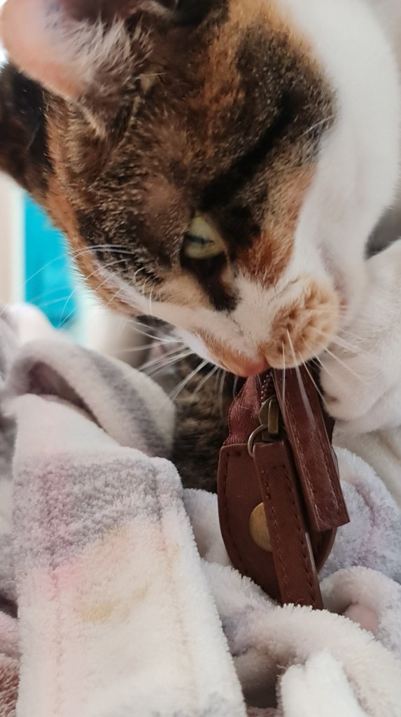 Aunty M came to see me this afternoon … or so I thought but rather than spending all of her time with me, she was leafing (pun intended) through the garden looking for a clover with four leaves. Okay, she was patting me all the time she was doing it – yes, Kaz had me outside today, and she eventually did find one. Just as well she found it today too because word is that Kaz is currently charging the batteries for the lawnmower and has her sights set on the grass out there … and, by definition, the clover as well.