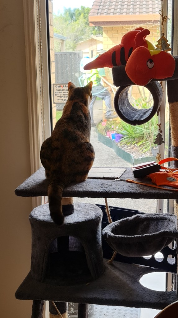 It’s a shame though … I was hoping I would be pondering this for a bit and I was planning to have a bit of a nibble while I did … of course, the nibble would have been on Kaz’s leg because if she had kept this to herself, it wouldn’t have become my problem. Doesn’t she know I have enough to think about – like how to get out into the yard a bit more?