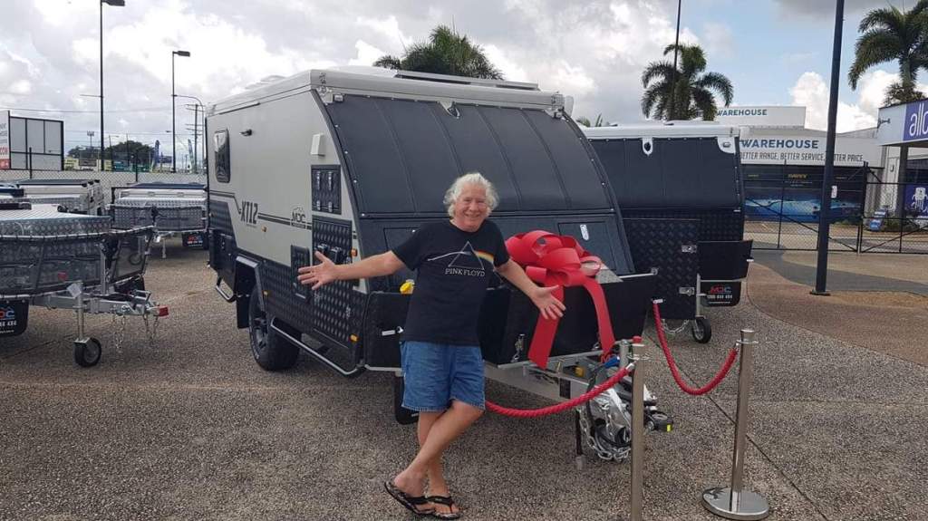 Is Uncle Wayne a turtle? They are fascinating animals with 26 species in Australia alone according to petsdomain.com.au. So what characterises a turtle and why would I think Uncle Wayne might be one? It’s that turtles carry their homes around on their backs with them. Snails do too but Uncle Wayne moves way too fast to be a snail. What’s that? He doesn’t have a shell … well, anyone who says that hasn’t seen the photograph Kaz showed me. Uncle Wayne looks very happy standing in front of his new shell. You can tell it’s a new shell because it has a big red bow on it.