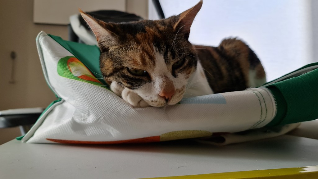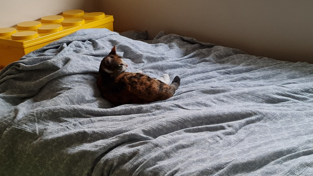 I had a busy night last night … I don’t know what it was outside their bedroom window/door but I knew I had to keep an eye on it to make sure they were safe. Mummy Sooz was up a lot of the times when I raced in there but she didn’t seem to be all that bothered by it … just as well they have a Nigey to watch over them! Otherwise, when I wasn’t on guard patrol, I spent most of the night sleeping out on my chair at the table.