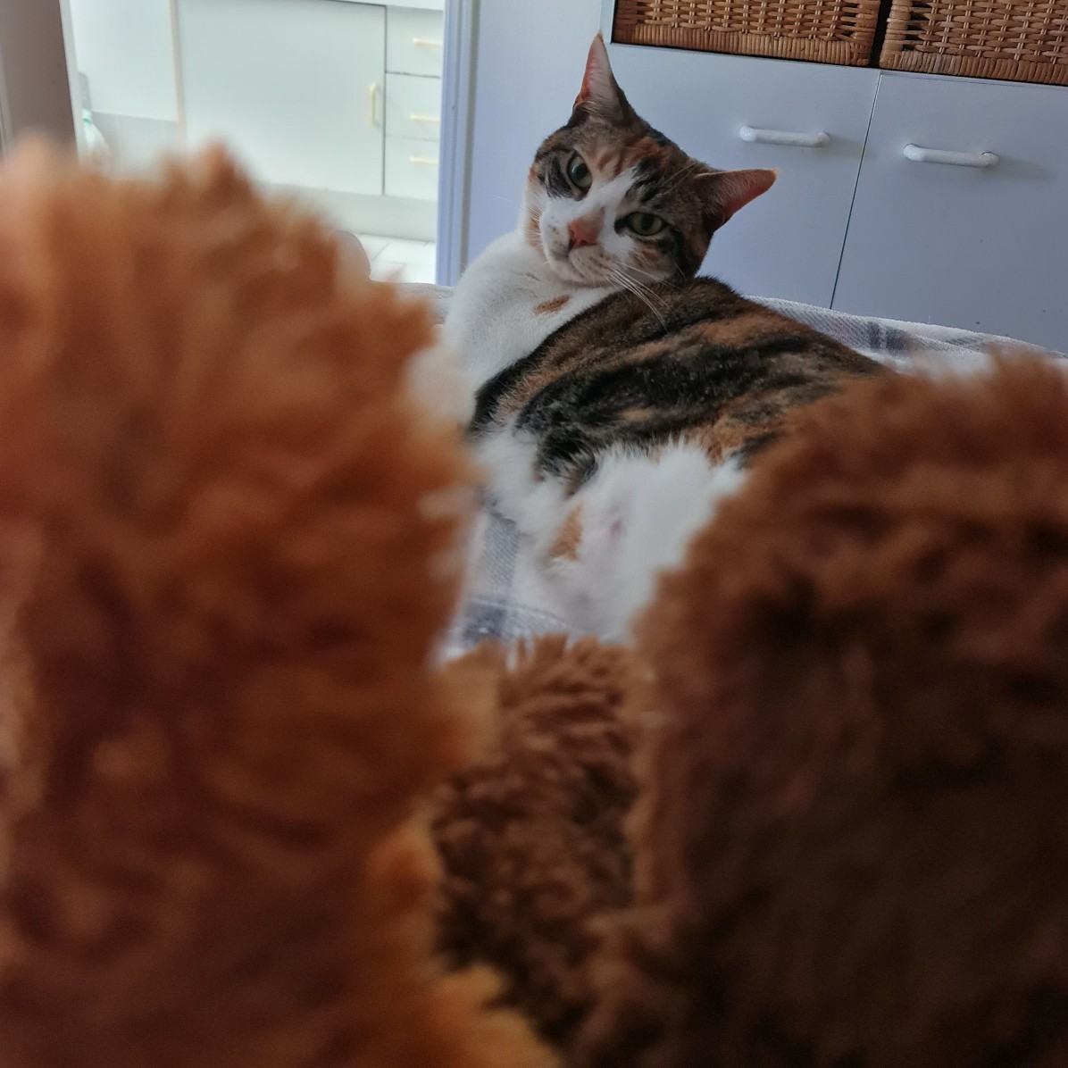 Even though the (dreaded) spray bottle is within easy reach, Uncle Wayne hasn’t reached for it once … although he did show me his huge water drinking bottle the other day – as if that was going to frighten me. He doesn’t know me very well! I could take him on in a heartbeat!