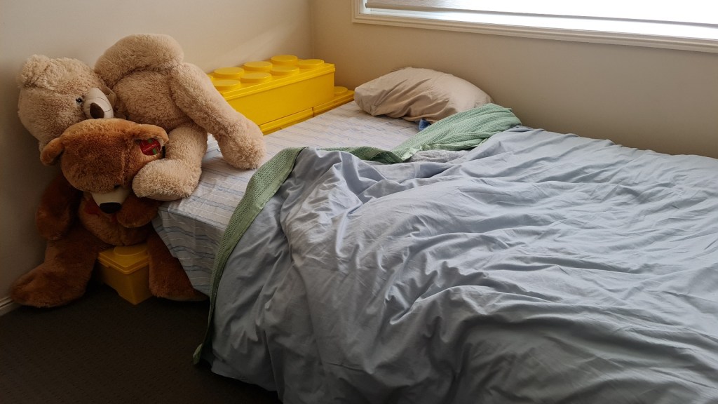He’s here! He’s here! Uncle Wayne is back and he’s living with me in my room. We have a deal … he lets me sleep in our bed during the day – and I let him have the whole room to himself during the night. That’s okay because we all know I like being in with the Mummies at night, now that they’ve finally stopped locking me out of the bedroom. (I know I have Uncle Wayne to thank for that too!)