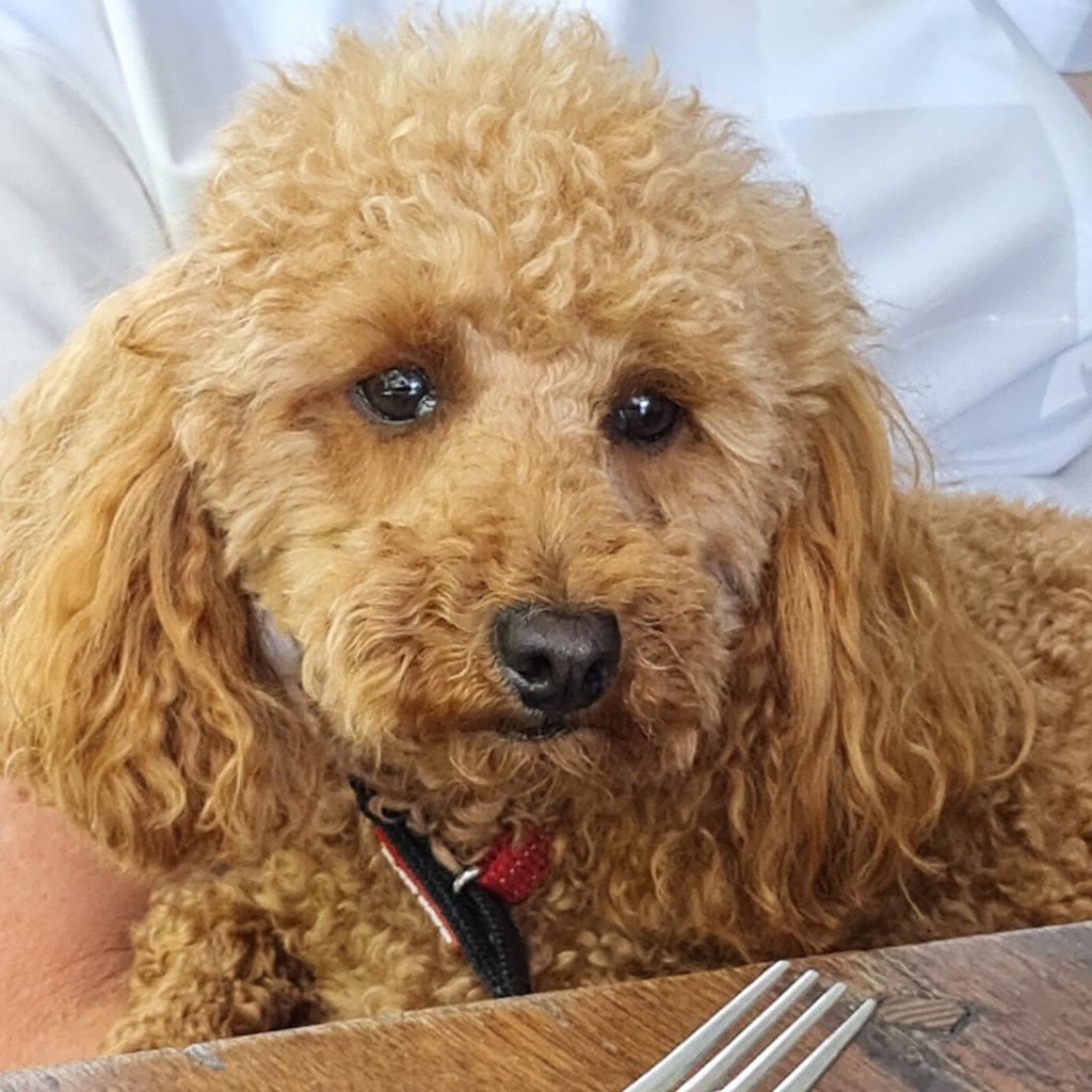 The Mummies went off to breakfast yesterday – and they came back talking about Blue … who, yes, I admit is a bit cute … but that doesn’t mean everyone has to hold him on their laps all the way through breakfast. I wouldn’t allow it if it was/were me (I really do need to find out where they’ve hidden my grammar manual!).
