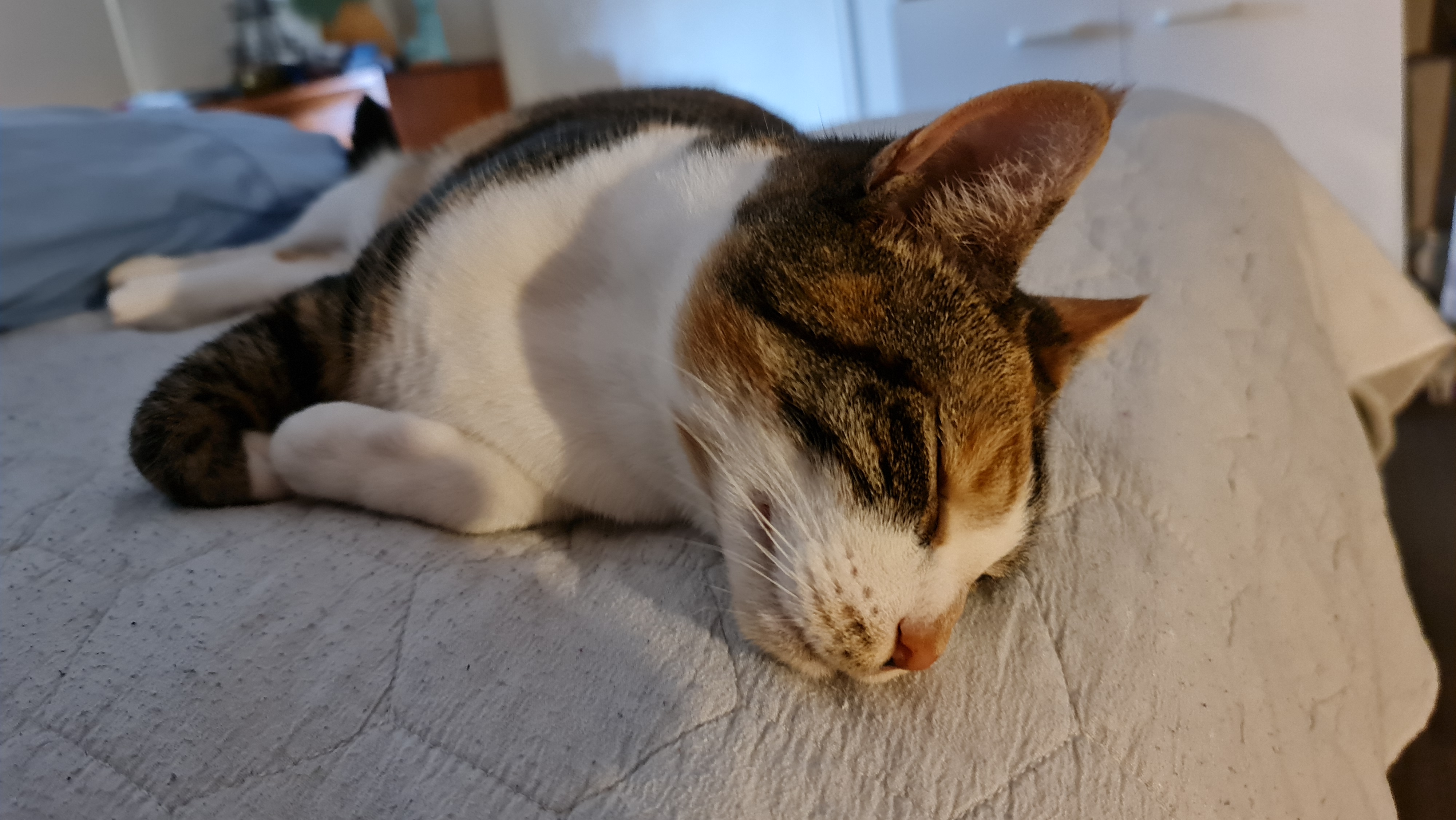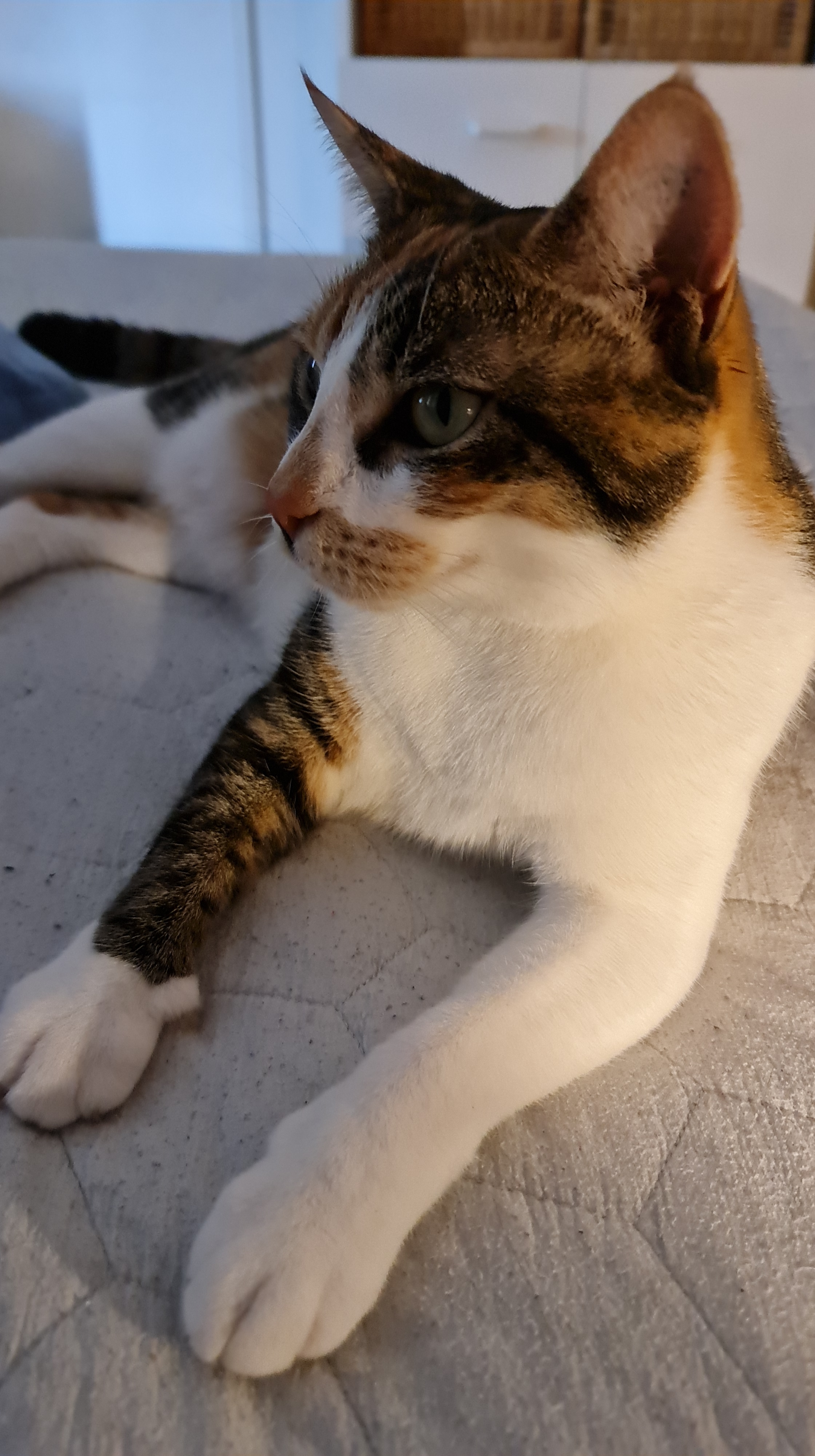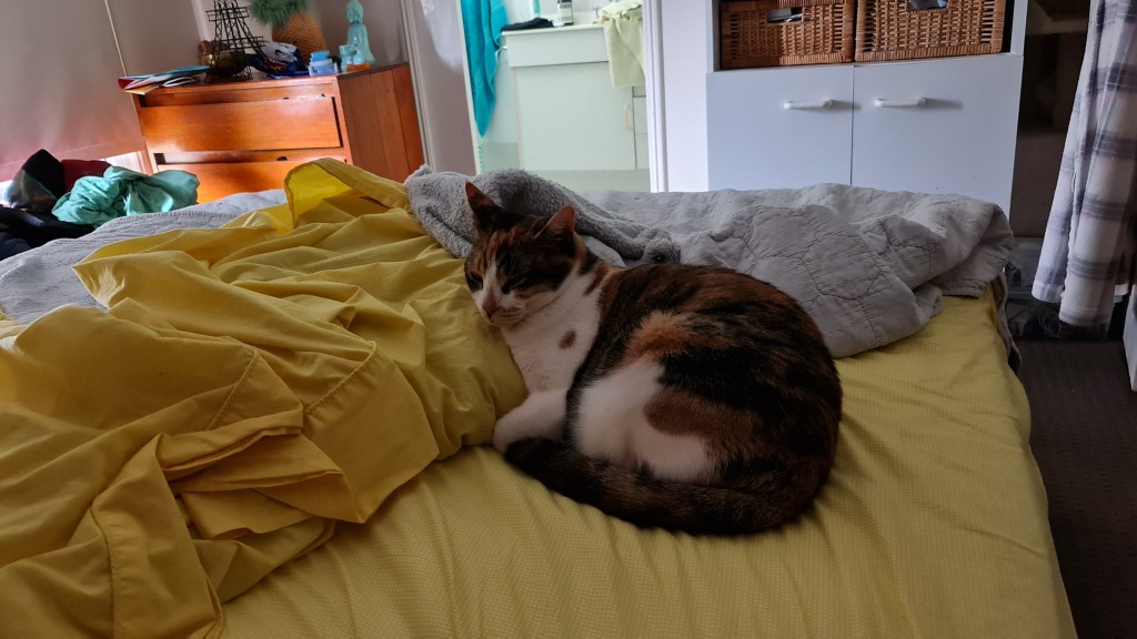 Because I was so glad to be home and because I had missed the Mummies just a bit, I decided they’d like it if I slept in their bed with them – at Mummy Kaz’s feet. They liked it so much they popped it on Kaz’s FaceBook page.