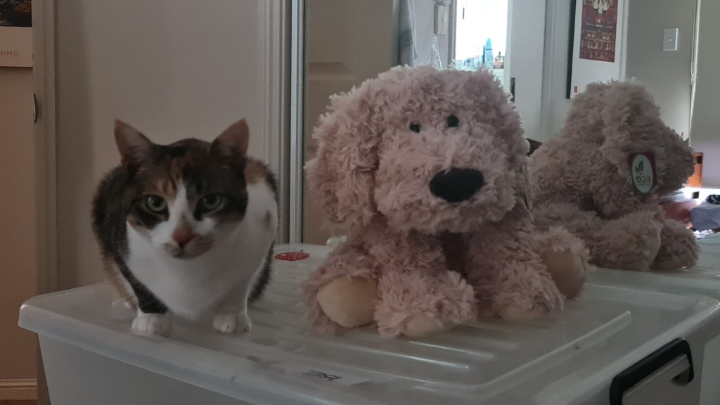 I have a new friend. Who knew the Mummies would bring a dog into the house … but they have. And he seems nice enough. His name is Tagus (like Haggis but with a T and spelled differently). He seems to like being here too … but I am going to have to have a word with the Mummies about all these other folk they are bringing into the house … like More…eese. There won’t be enough room for me on the table or the couch or anywhere if they keep going at this rate.