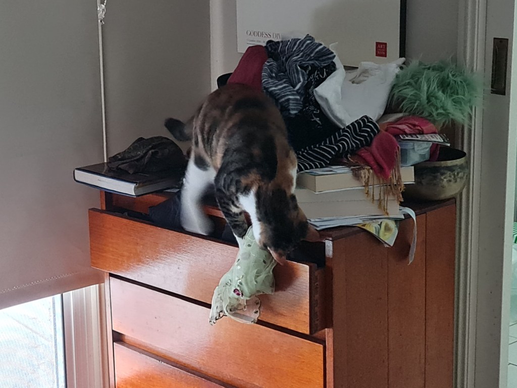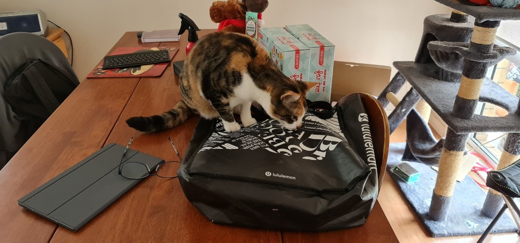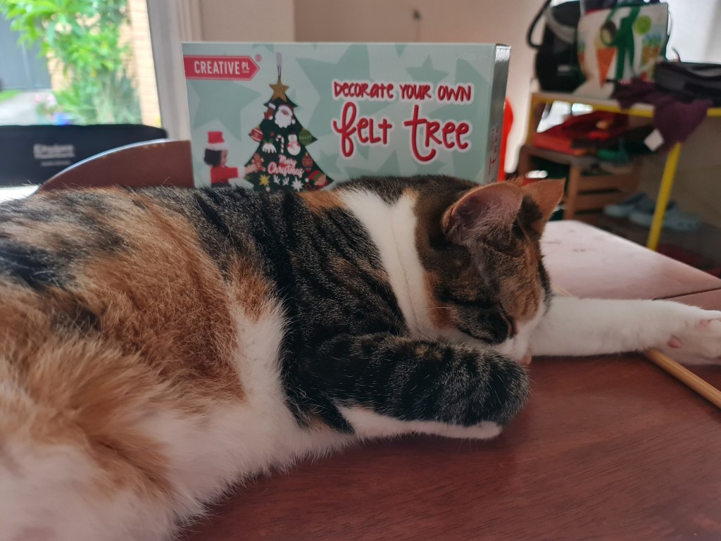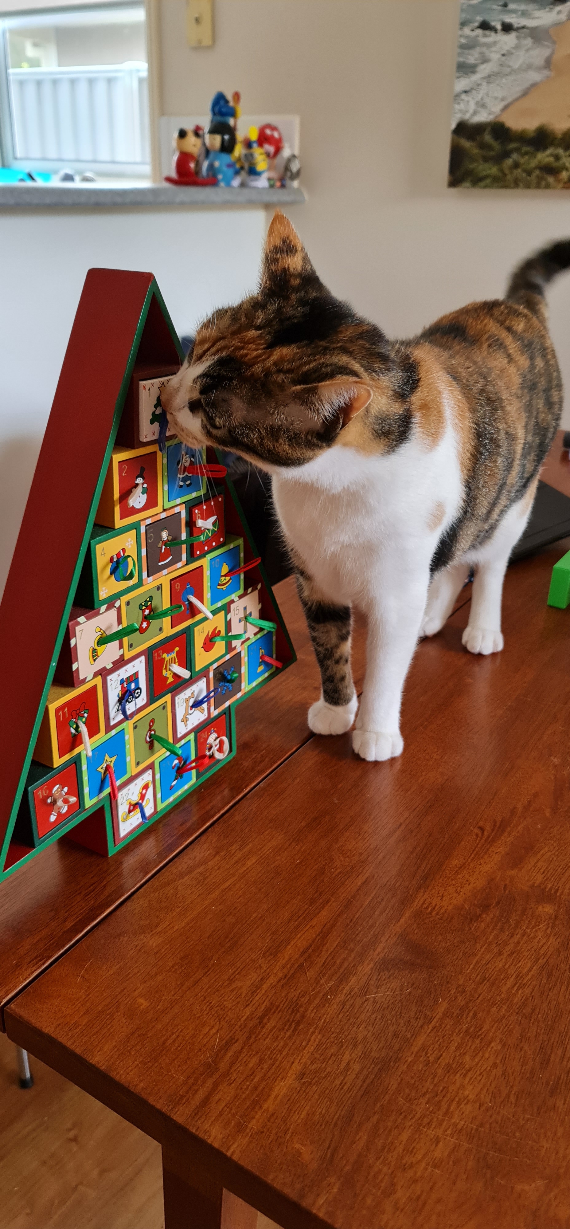They had an advent calendar here overnight that they’d borrowed from their mate P. It was very intricate, wooden and looked quite special – and that’s before you consider the bag it came in … and the special packing it was wrapped in … and OMGoodness, the whole thing smelled like … other cats. Their scent has been here before … on Uncle Wayne when he went off to do those jobs for P a while back and he came back in the throes of terrible allergies. Poor Uncle Wayne. I wonder if he’s going to be coming back this way soon. Hmmmm.