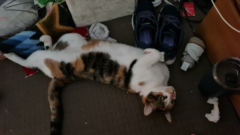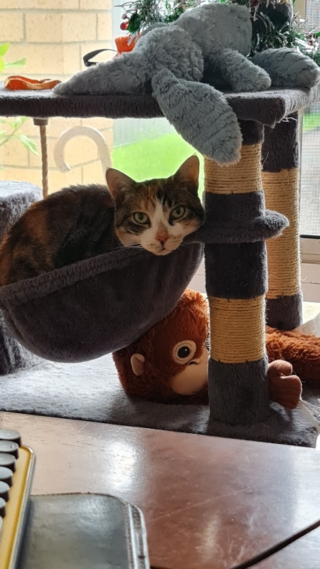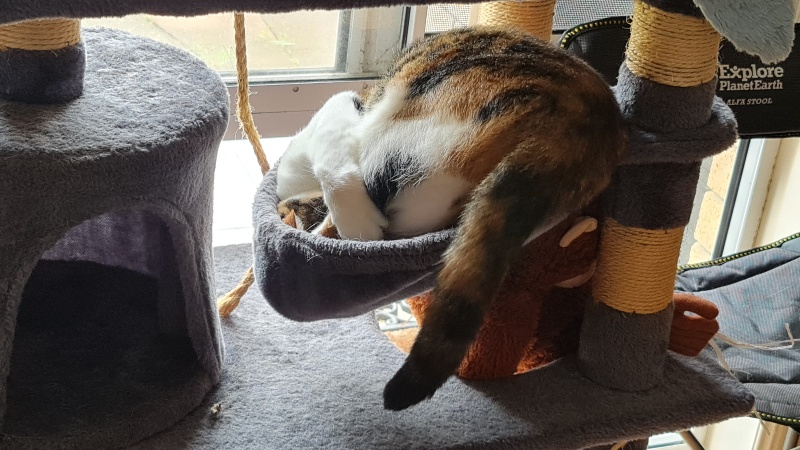 It is so nice to be home. I have been having a wonderful time rediscovering all my favourite sleeping spots – and another one I haven’t been in for a while – probably because the Mummies have had it hidden behind the door for a while.