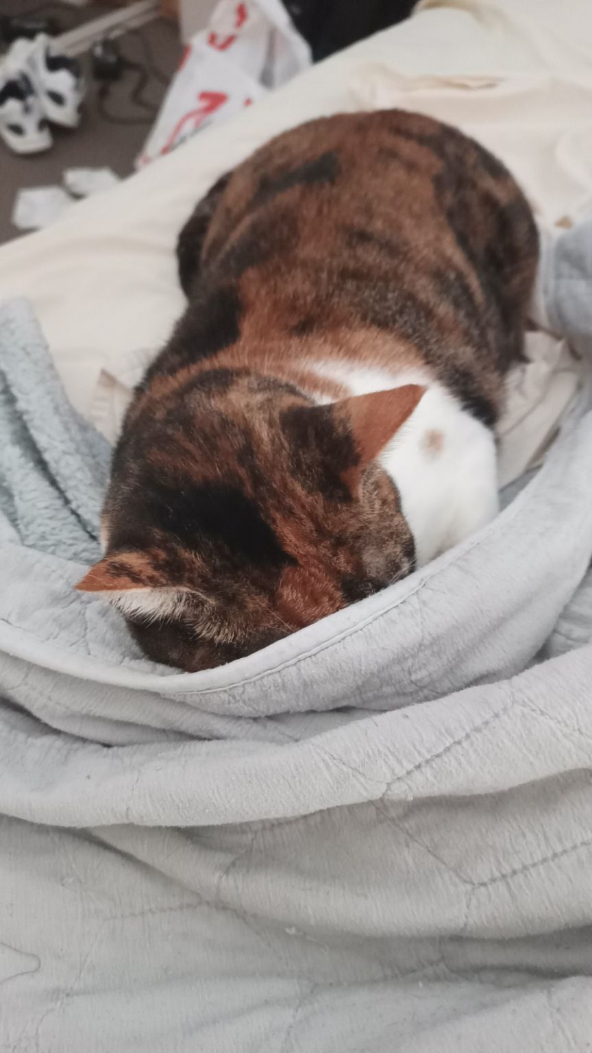 You would think it’s easy sleeping down the bottom of the bed (I prefer on M Kaz’s side because she doesn’t move me out of the way as much) and it mostly is but sometimes I need to remind M Kaz I’m there and it is incredible how responsive she is when I rest my teeth on her calf. She soon gets the idea and scooches over a bit or hangs her legs out the side of the bed or gets up for a bit. And when she gets up I follow her out to the kitchen and she rattles my cookies bowl and I have some while she hurries back up the hallway to bed and gets herself positioned before I race back in. It’s important to remember to play games and have fun even if someone doesn’t necessarily feel like it. (That’s you M Kaz!)