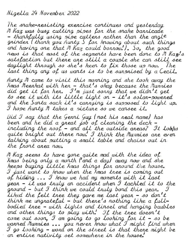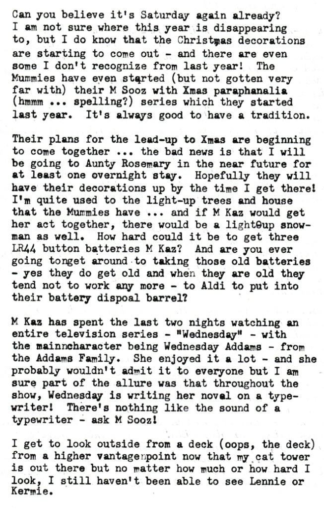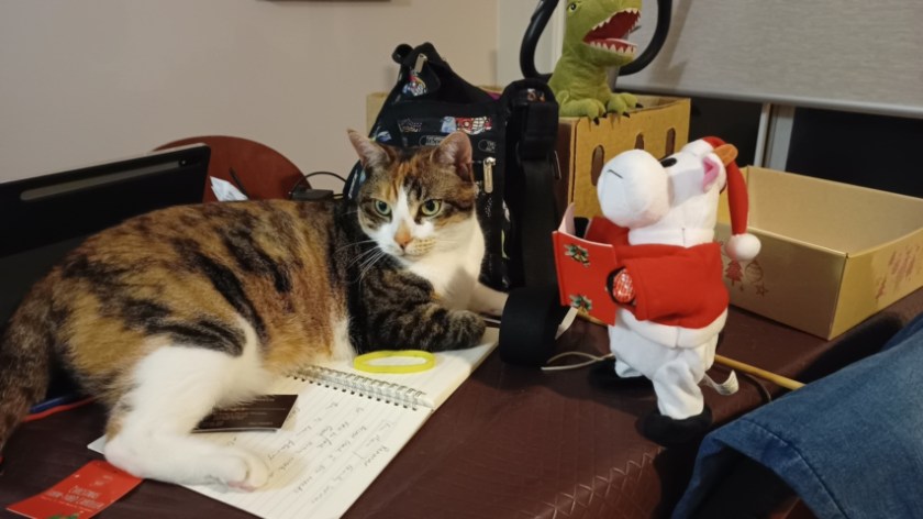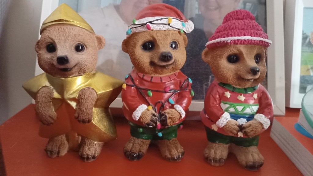 Aunty M came to visit this afternoon and she had something for M Sooz with her – I’m not quite sure what to call it. Is it a toy? A memento? A furry? You decide because I really can’t. His name is Hugo and he’s the Myer 2022 bear – or do those antlers mean he’s a reindeer? So many questions!