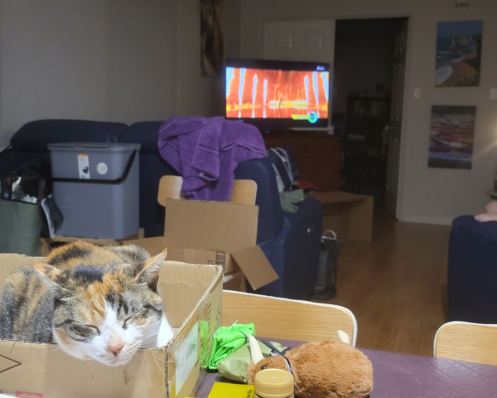What the? Why are those Mummies watching this … Musical show – yes, that would be the Eurovision song contest. I tried watching it last night, but it was too much for me and in the end I sat in my table box and turned my back on it.