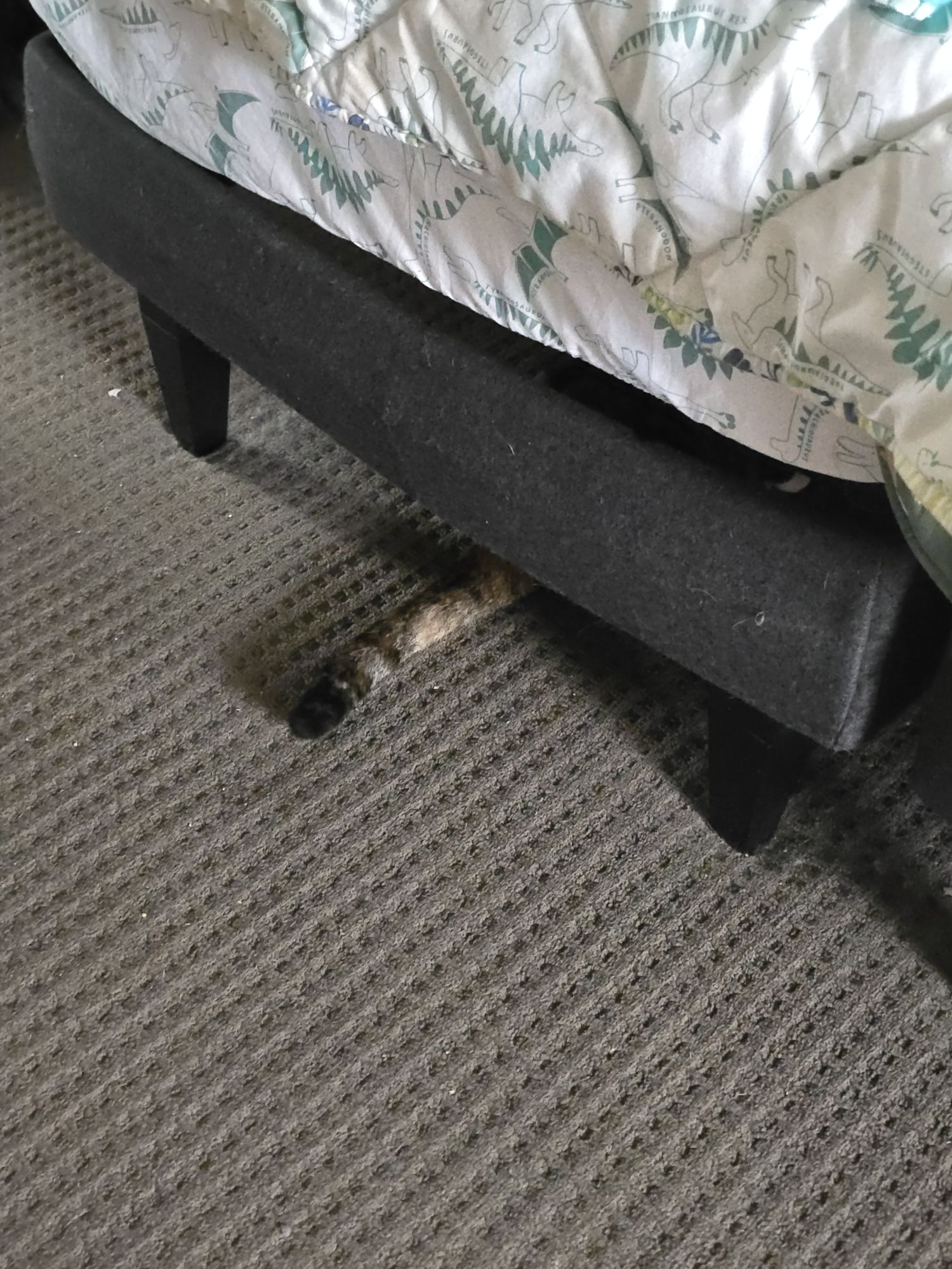 The only good thing about all the rain we’ve been having is that I don’t have to go out in it – yes, yes, we all know I’m not actually allowed to go out in it but no-one had to say that out loud. There’s no need to rub it in. But anyway the last laugh is on the Mummies because I did manage to get out there earlier this week- not for long, mind, because M Kaz was right onto me – not fast enough to prevent it though – heh heh.