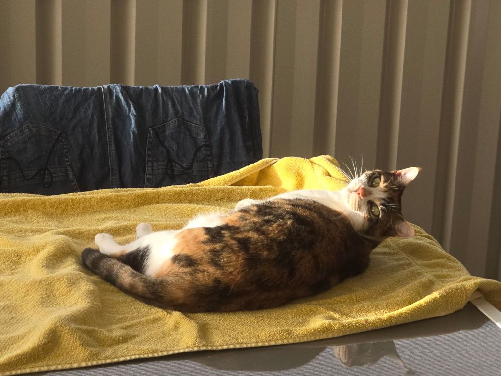 I spent some time yesterday afternoon trying to break in to M Kaz’s office. I don’t know why she insists on locking me out – I just want to help her with her work. No, I can’t type (well) – we all know that, and the headphones don’t really fit me – but I can operate the foot pedal! No, seriously I can – maybe not well because it’s hard to select which part of the pedal to press when most of you is on it. Hmmm.