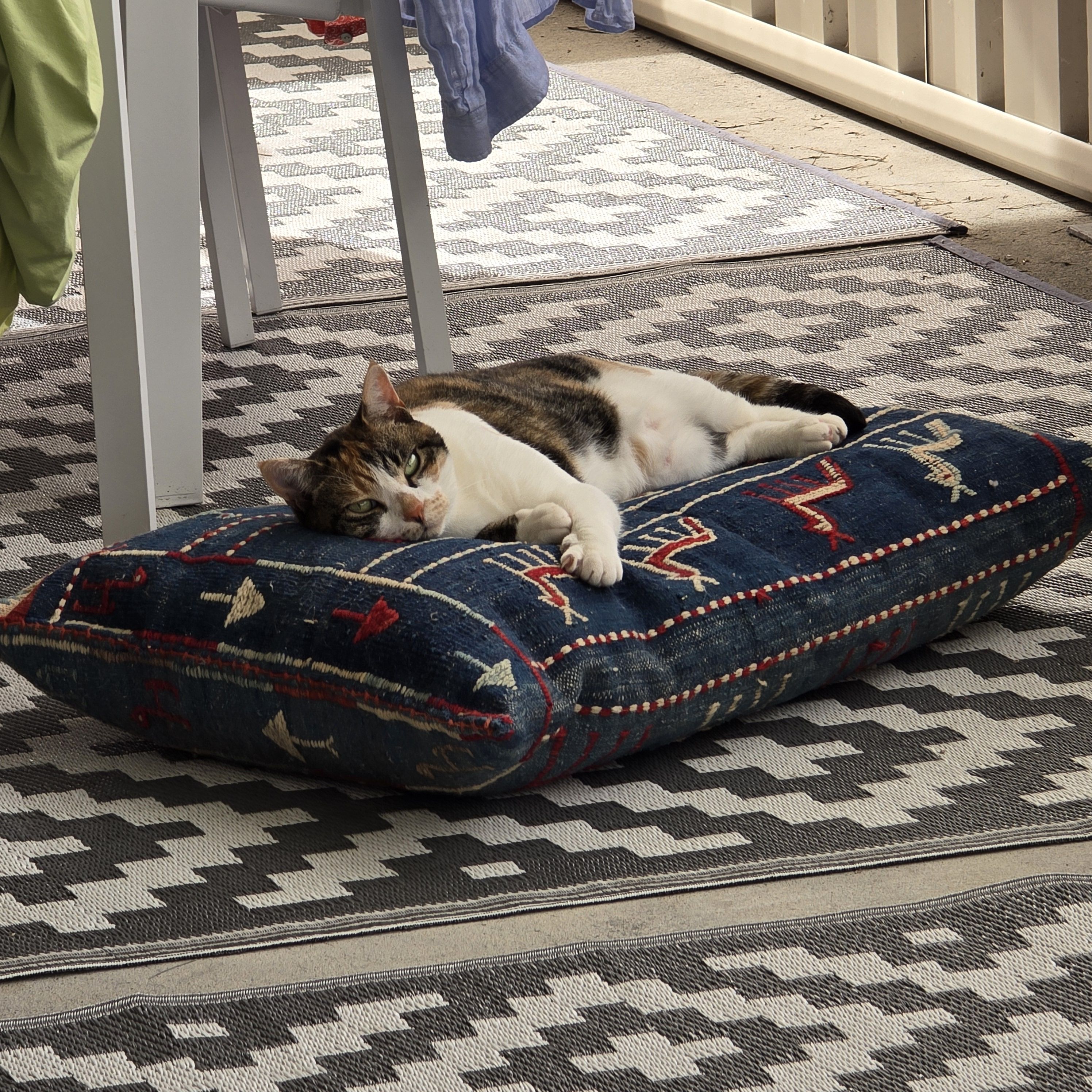 There’s still been no sign of KB (the snake) but I am a little worried that the Mummies might find it out the front again (or out the side or out the back where they are not expecting to see it). M Kaz was sitting out in the sun in the front courtyard the other morning and I bravely kept an eye on things from my window seat (all right, bed) in her office.