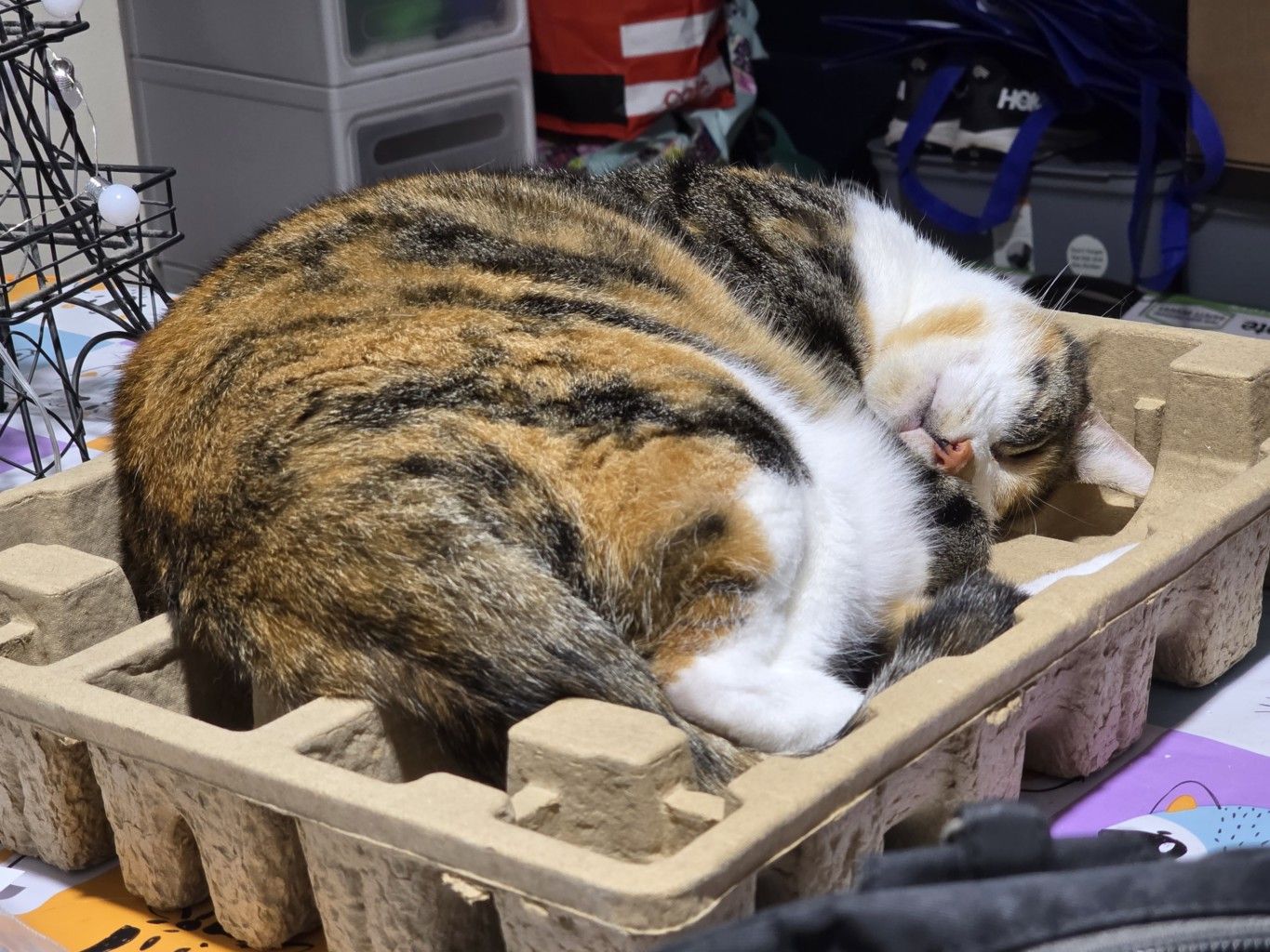 Not sure I’m going to fit into the latest box M Kaz has brought home. It’s for a RECHARGEABLE GALAXY MOON NIGHT LIGHT which can cycle through 15 colours, or you can just leave it as one colour, brighter, dimmer, flashing – yes, yes, M Kaz has been playing with it this afternoon.
