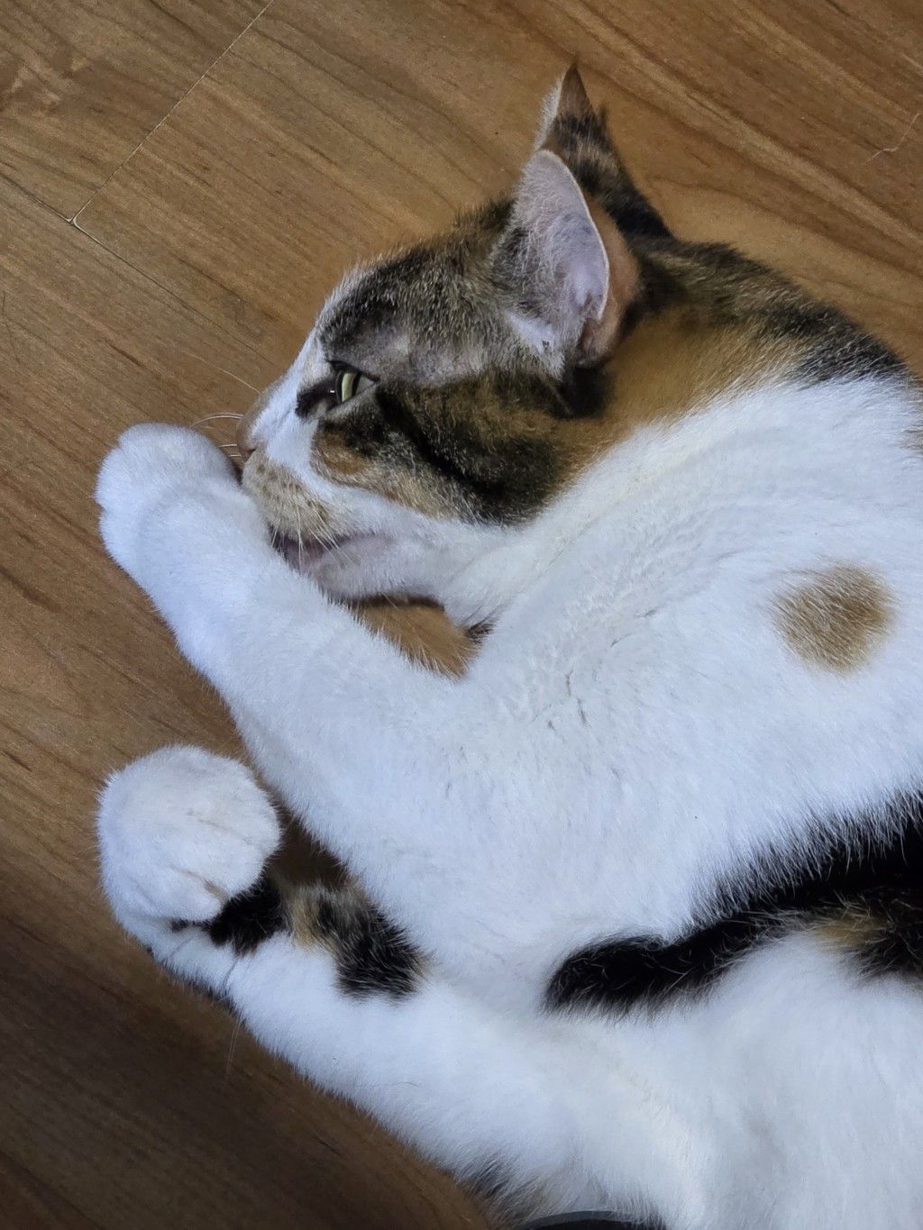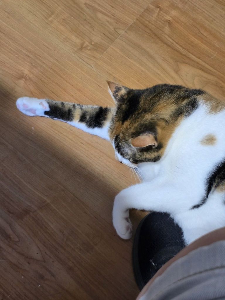 Did I tell you that those Mummies went away for the weekend? It was okay because Aunty M came to see me, and talk to me, and pat me, and feed me and empty my tray. I like it when Aunty M comes to visit – and she’s been again since then. She popped in on Monday afternoon. Mind you, those Mummies had already had breakfast with her (and Roz) but it was a welcome respite when Aunty M arrived because M Kaz had spent the day working in her office – and she didn’t seem happy about it.