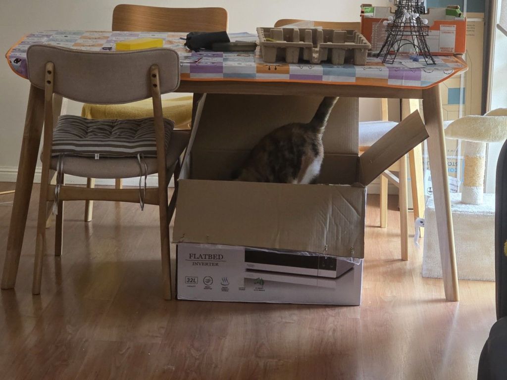 The Mummies keep bringing boxes home for me. The air fryer box and its inserts are just wonderful – and I was truly happy enough, feeling very loved – and then an even bigger box came home with the Mummies. This one had the new microwave oven in it. Who knew they would be getting a new microwave? Not them – until yesterday morning at least. The sad thing is that it went on the fritz the night before, and M Kaz had thought she fixed it by doing a hard reset (thank you for the instructions interweb). She was wrong – as she found out when she went to re-heat the coffee she had brought back from the Broadwater. Yes, the lights went on, it hummed, and the timer counted down – but that’s about all that happened,