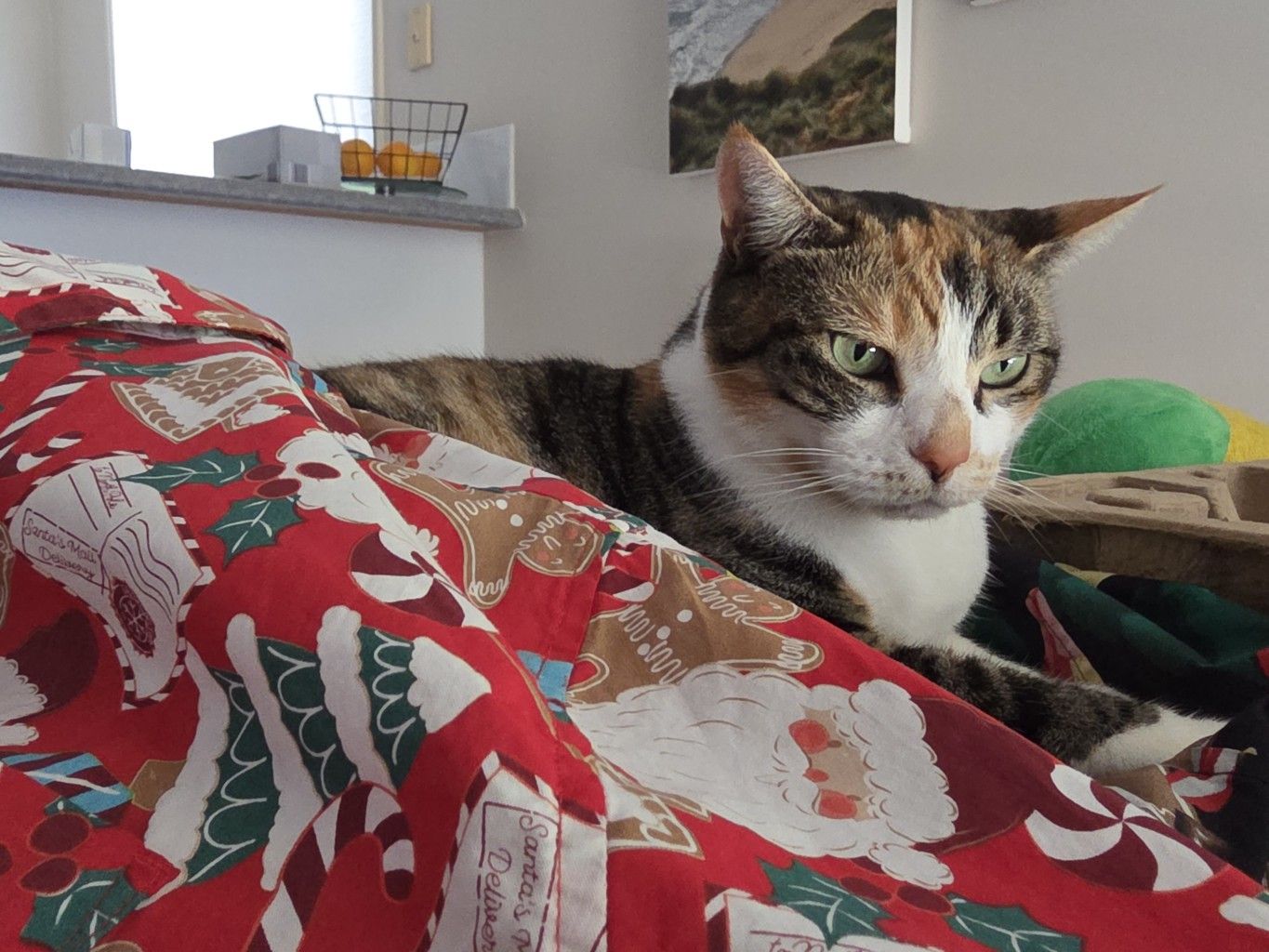 It is beginning to look a lot like Christmas. The Christmas trees have made it inside (finally) and I notice that the singing reindeer has also made an appearance. But I know for a fact that there’s still a heap of Chtistmas stuff out in the garage – the ‘real’ Christmas trees, the snowman, the tinsel – and M Sooz’s nativity scene. Then it really will be Christmas. And since you’re going out that way, M Kaz, why don’t you take my c-a-g-e with you. We certainly aren’t going to need that for a while. (Why are you sniggering, M Kaz?)