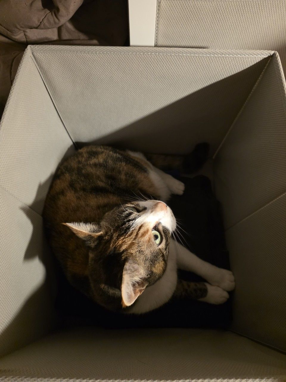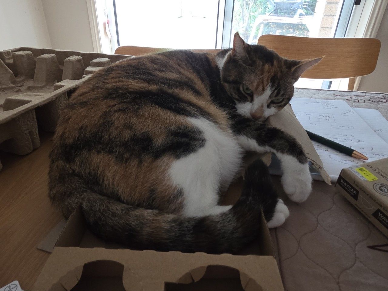 My favourite box, absolutely amazingly, is still on the table and I’m still using it. Yes, yes, I know I can’t quite get all of me into it all at the one time, but there’s nothing wrong with that. I’m also spending time on my recliner (in one of my other boxes – of course).